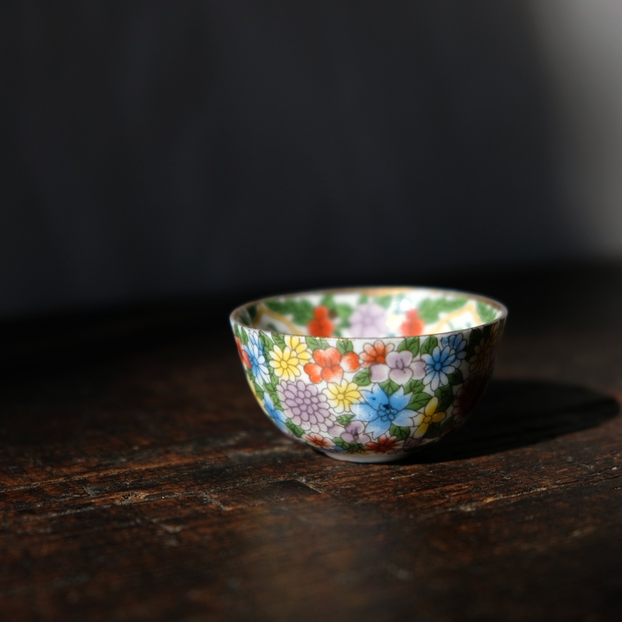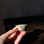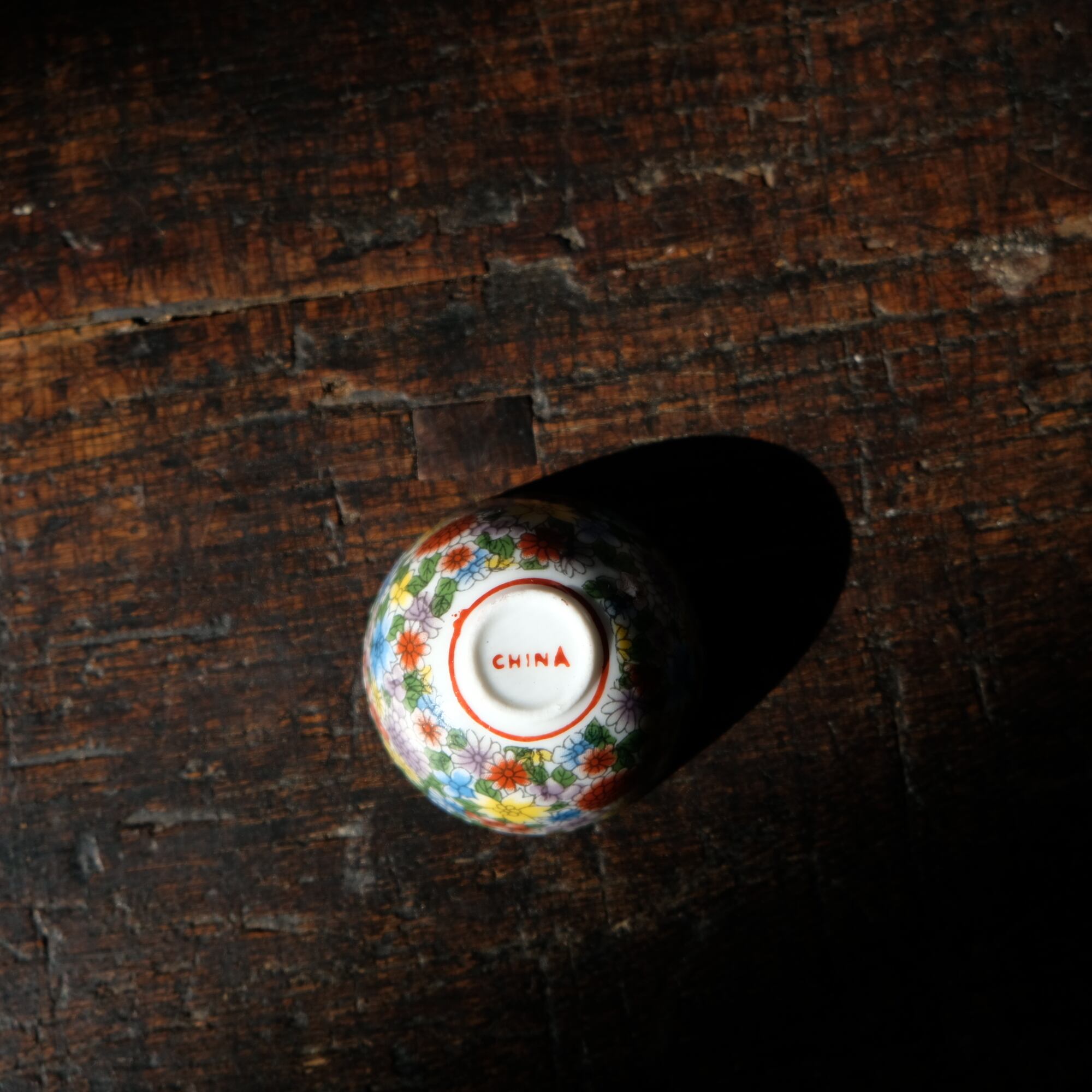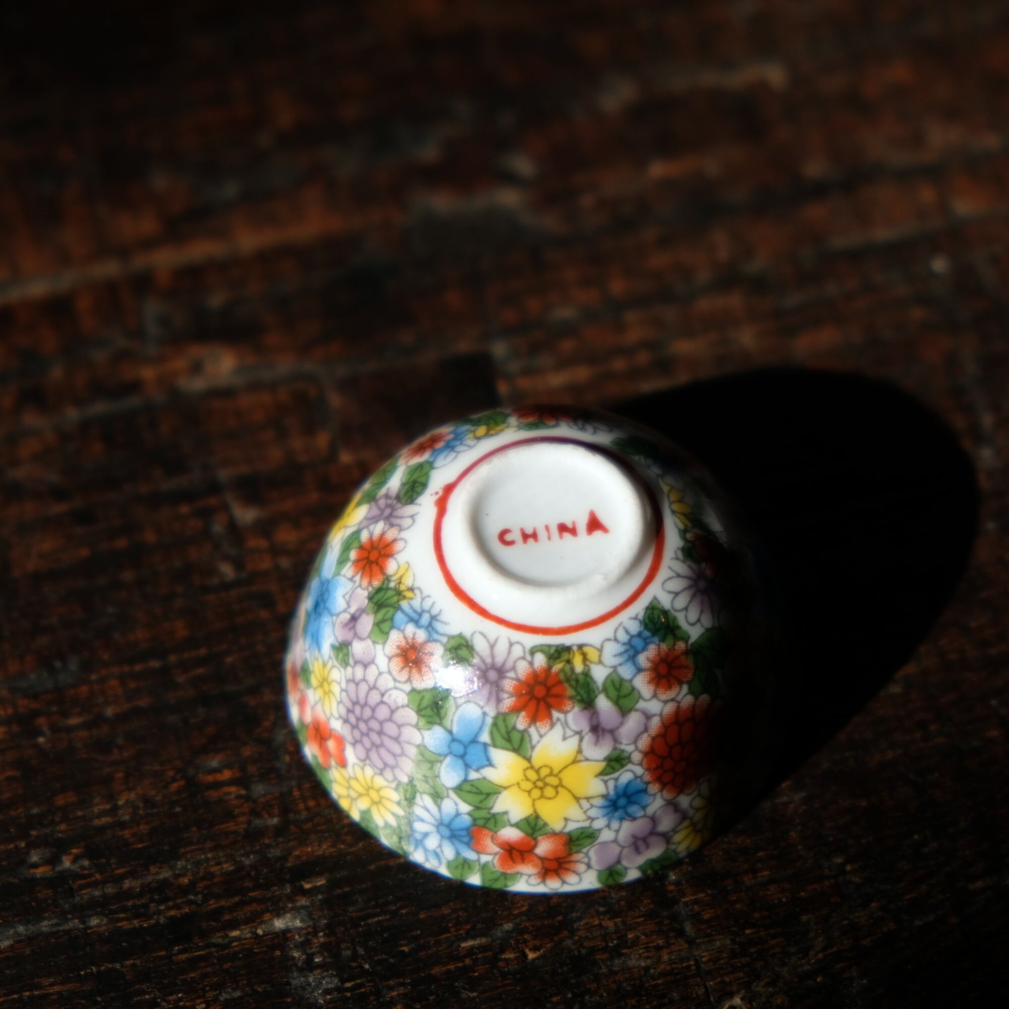 見込みに皇女◆チャイナレトロで可愛い。中国産 色絵金彩小ぶり猪口 花尽くし。シノワズリ 転写 B