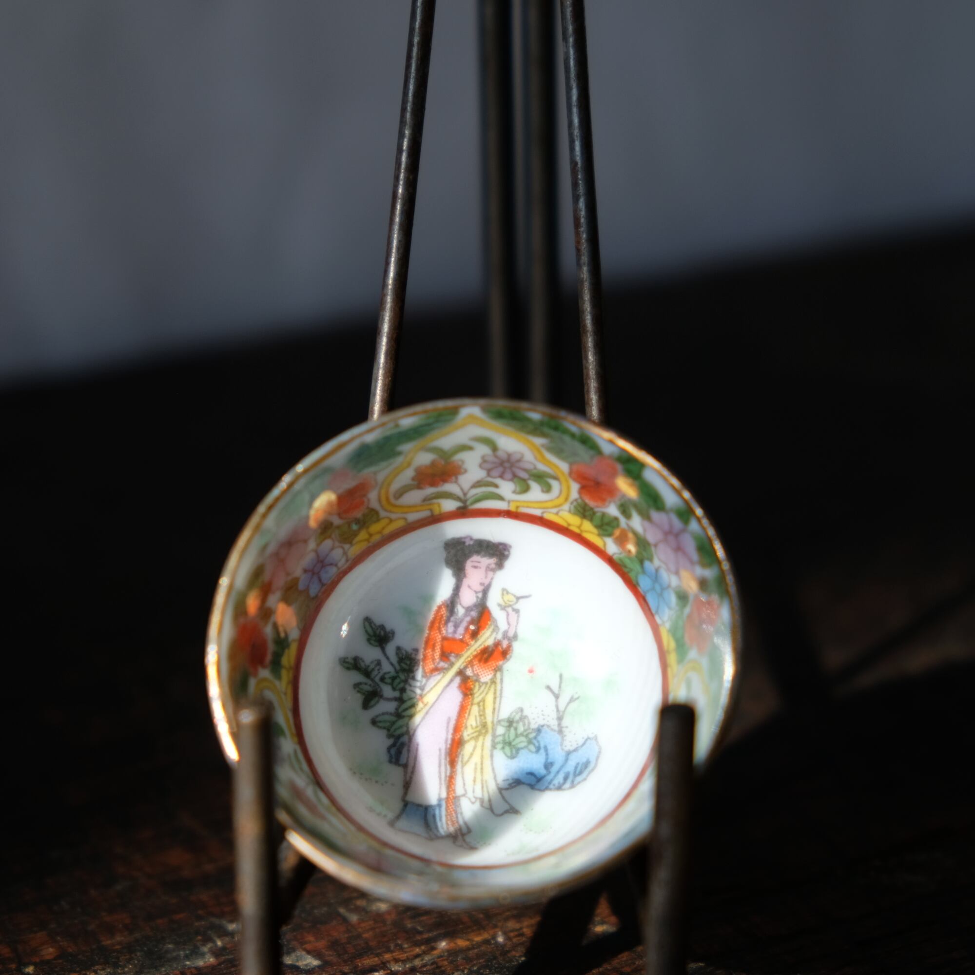 見込みに皇女◆チャイナレトロで可愛い。中国産 色絵金彩小ぶり猪口 花尽くし。シノワズリ 転写 J