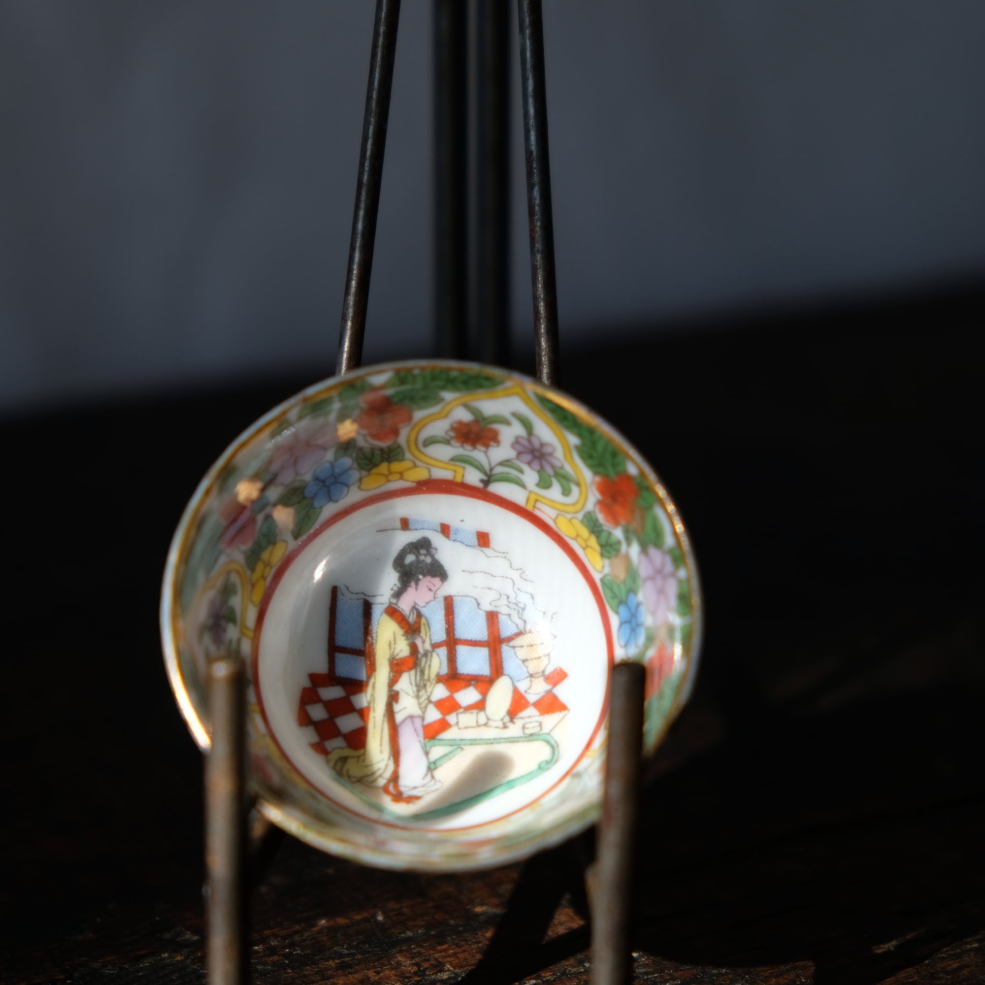 見込みに皇女◆チャイナレトロで可愛い。中国産 色絵金彩小ぶり猪口 花尽くし。シノワズリ 転写 L