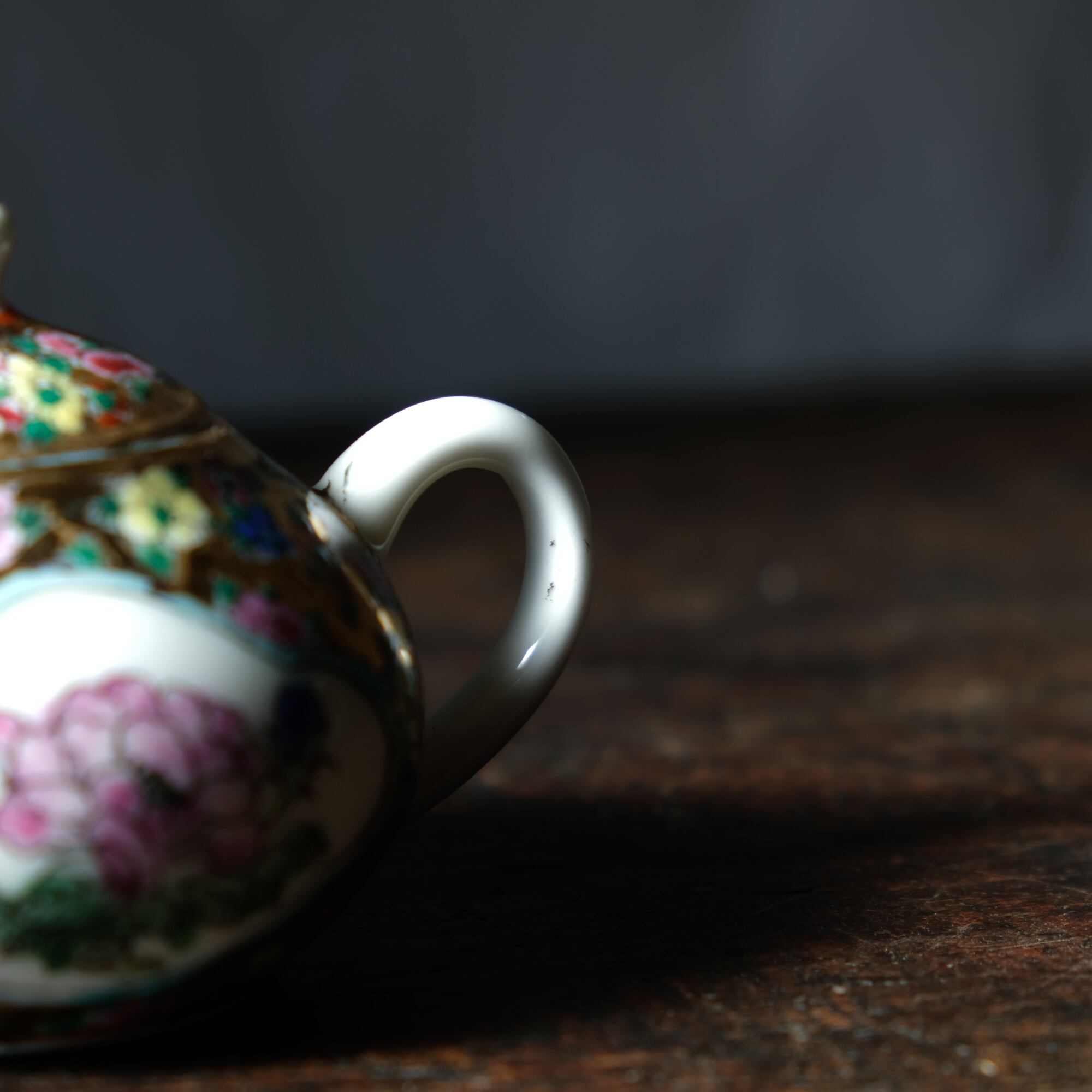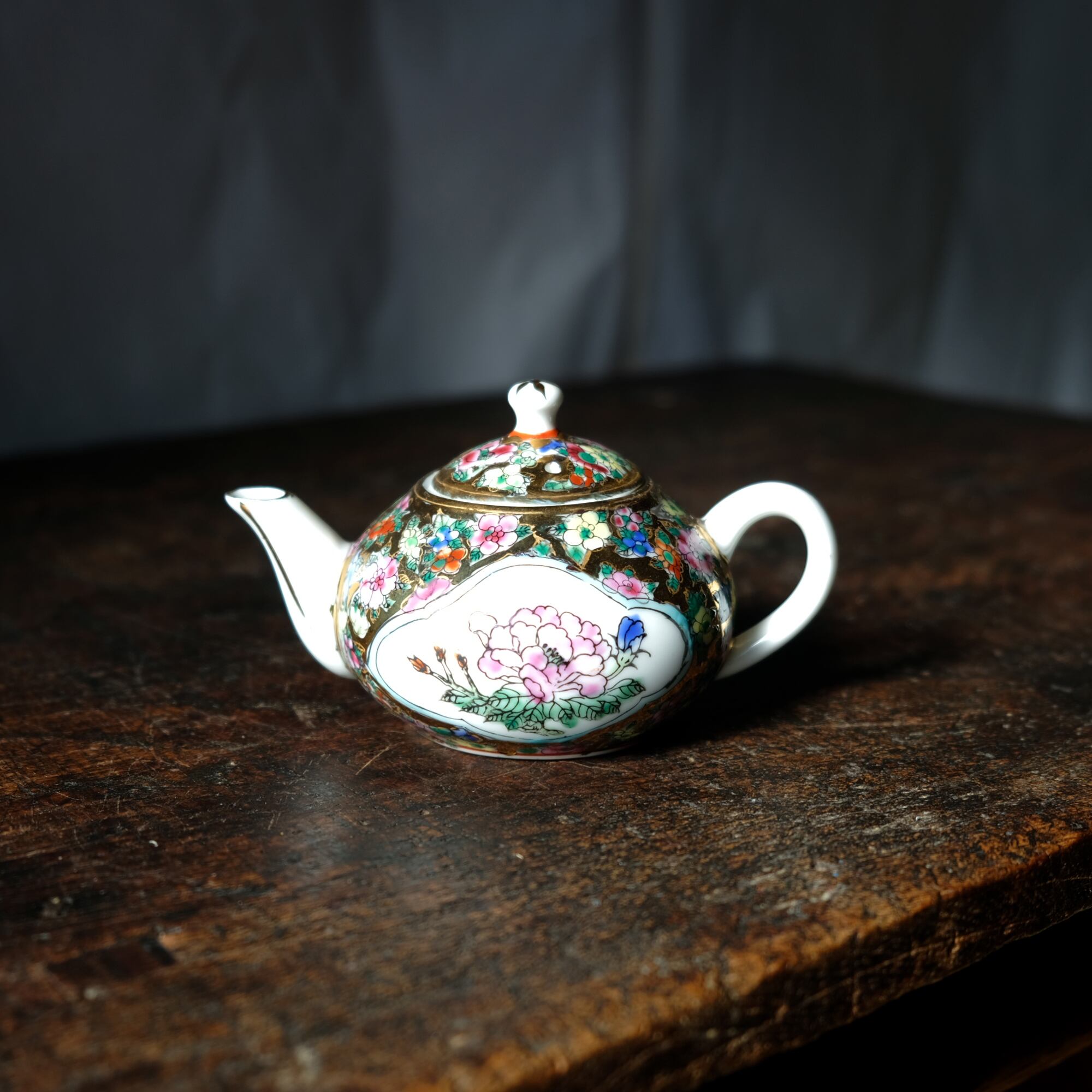 カラフルな花尽くし◆中国産 色絵金彩小ぶり急須 煎茶茶器 チャイナレトロ シノワズリ