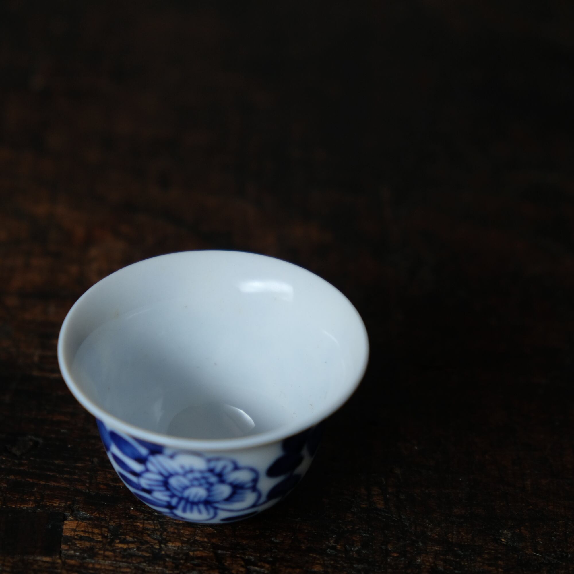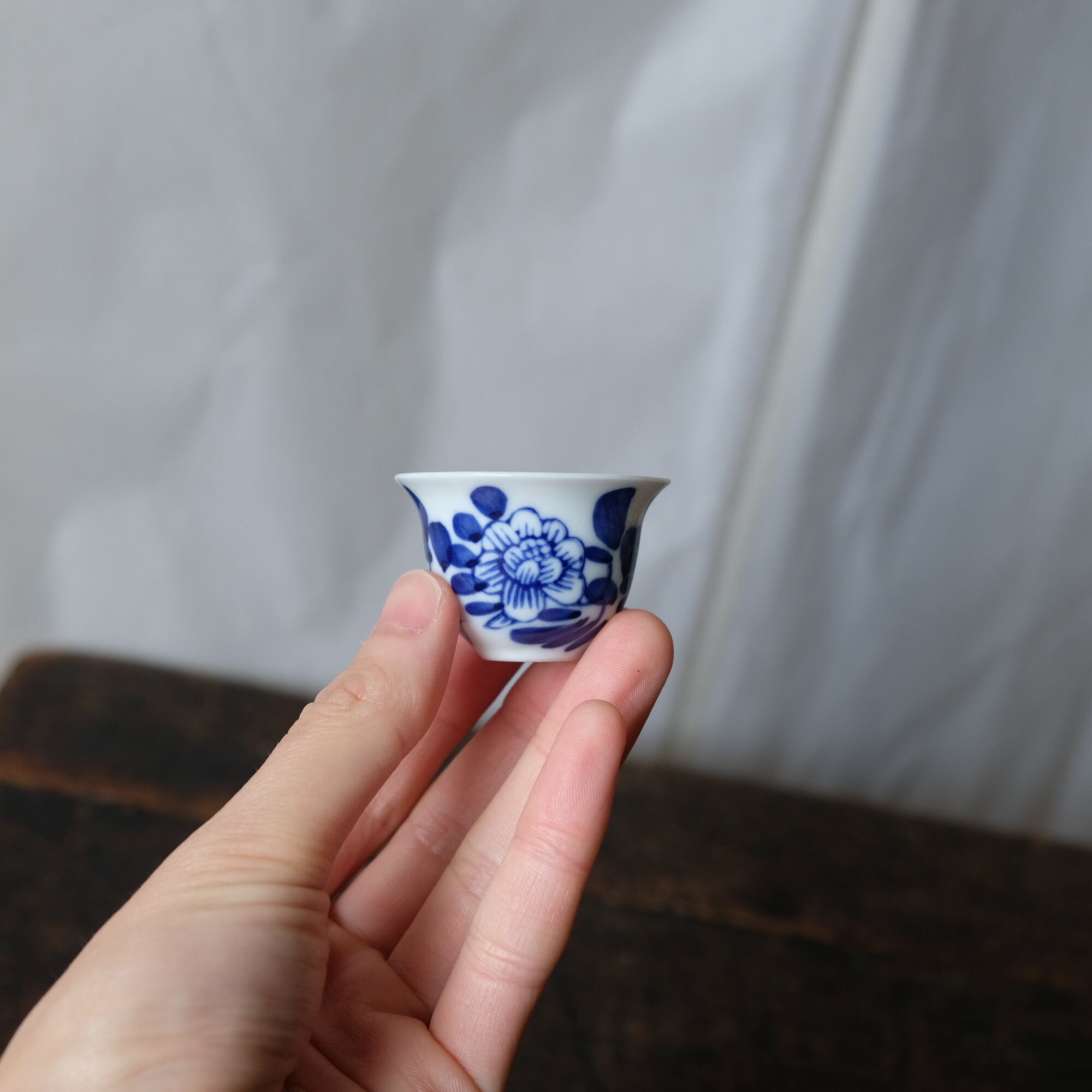 シノワズリな雰囲気◆青い草花で可愛い。中国産 染付小ぶり猪口 茶杯 煎茶茶器 丁寧な暮らしに。