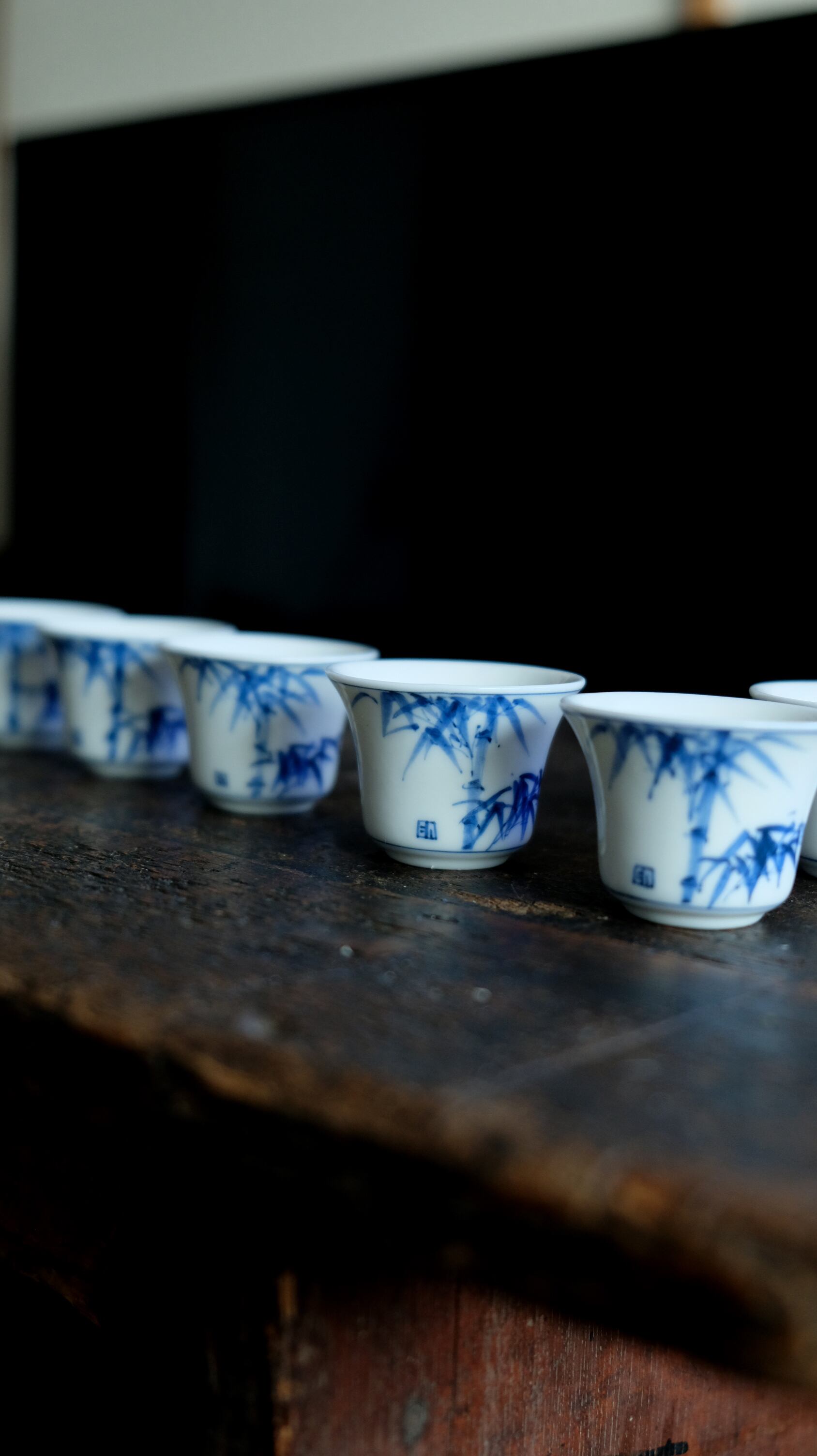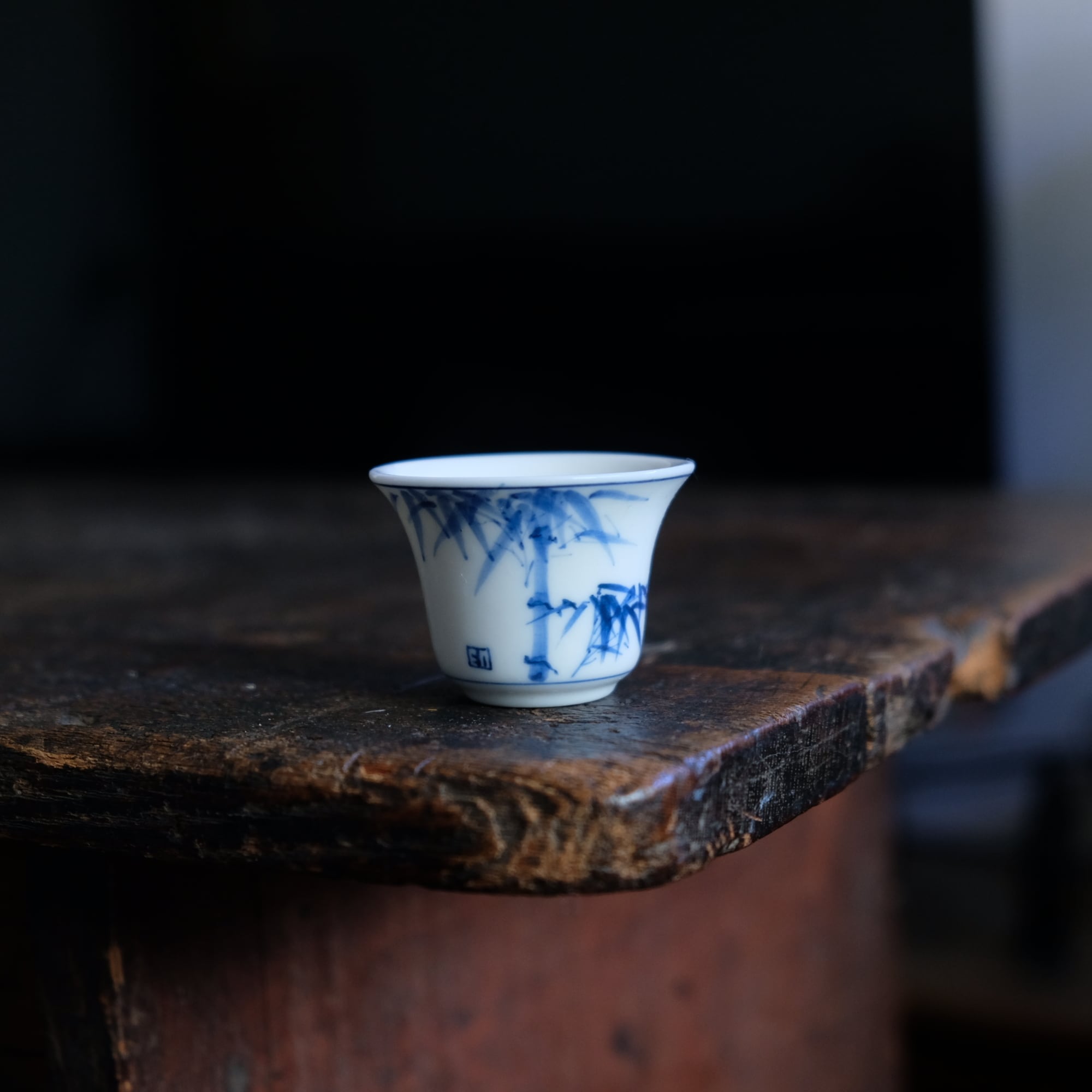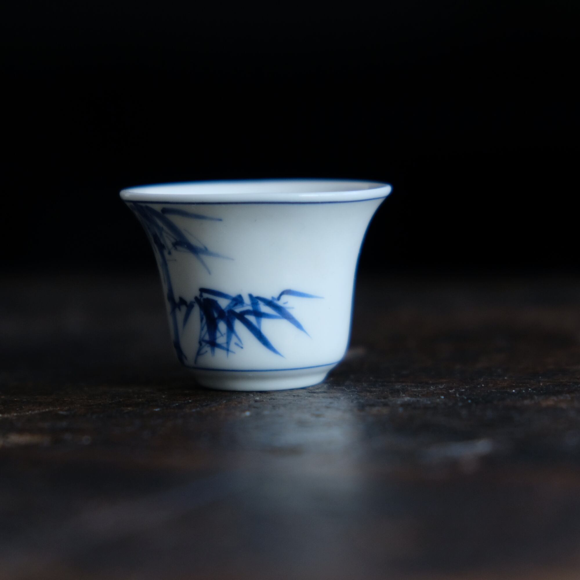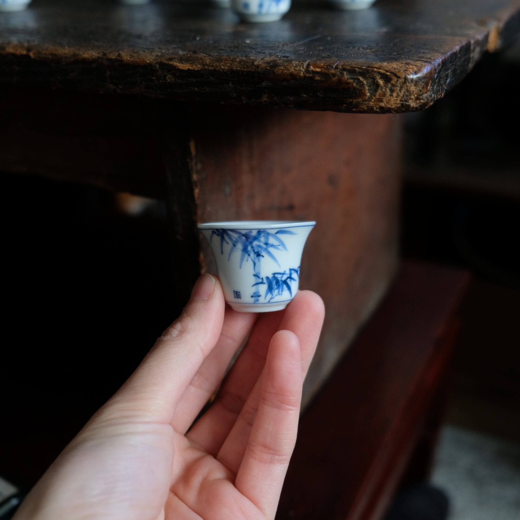 青い竹の絵付け◆中国産 染付小ぶり猪口 茶杯 煎茶茶器 丁寧な暮らしに。オブジェ