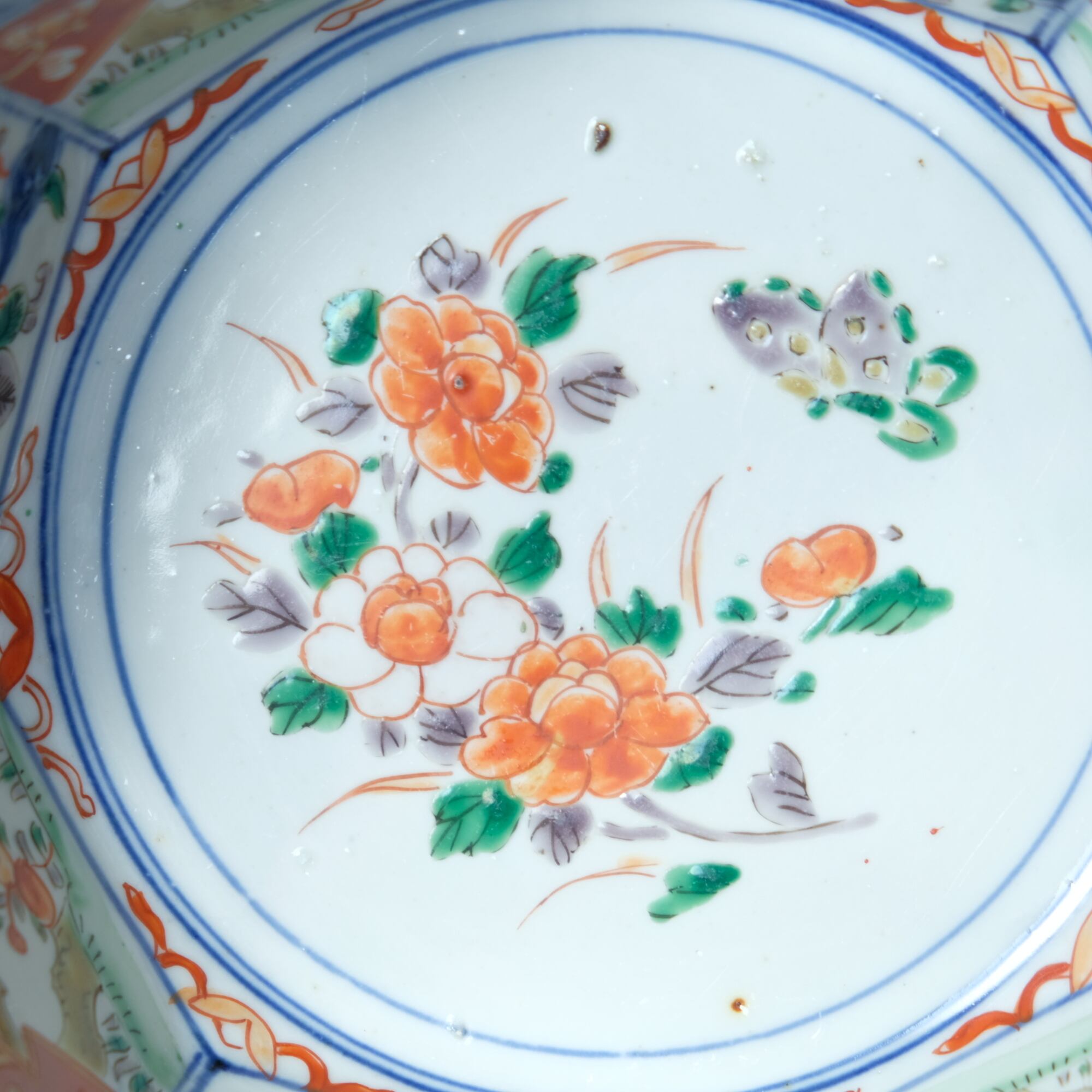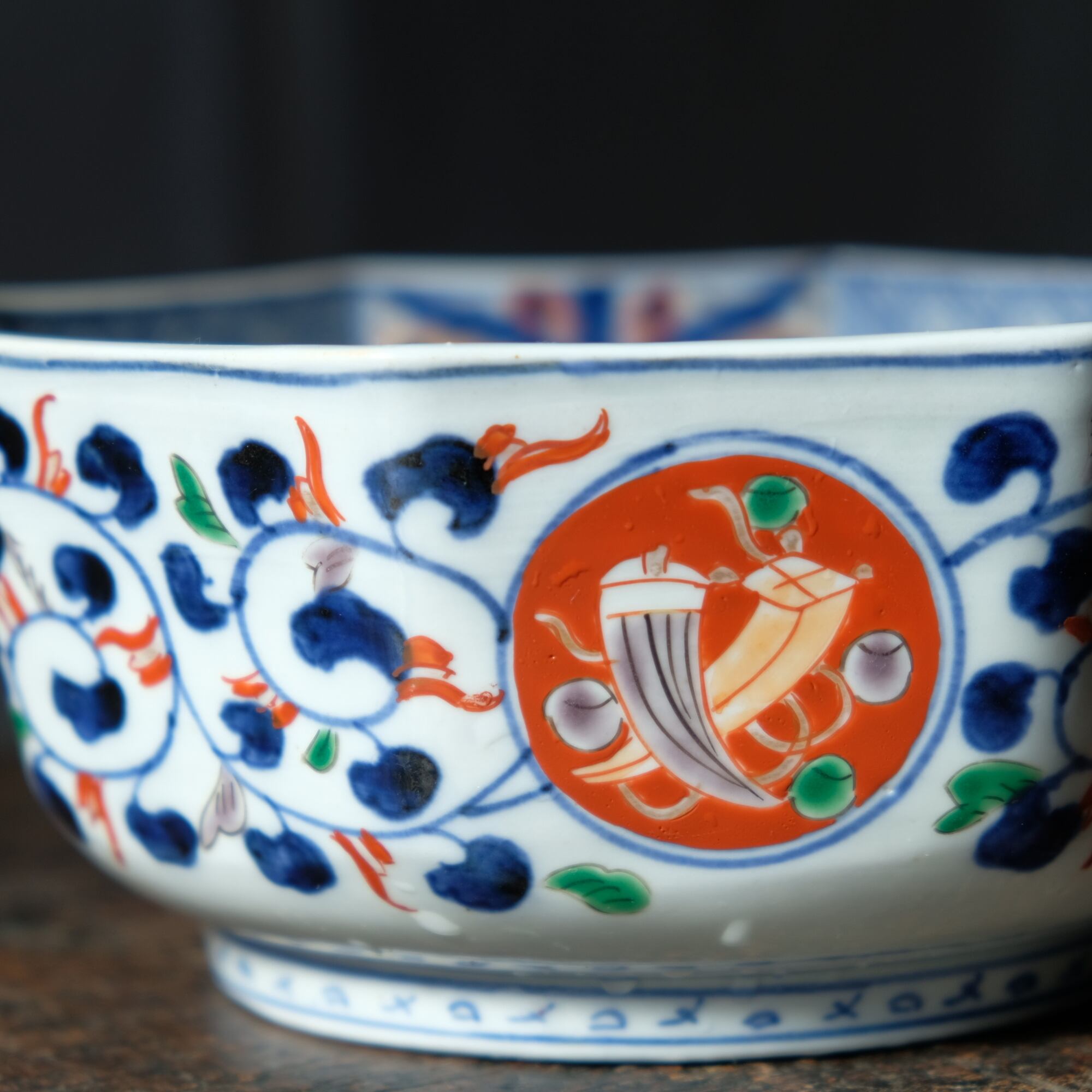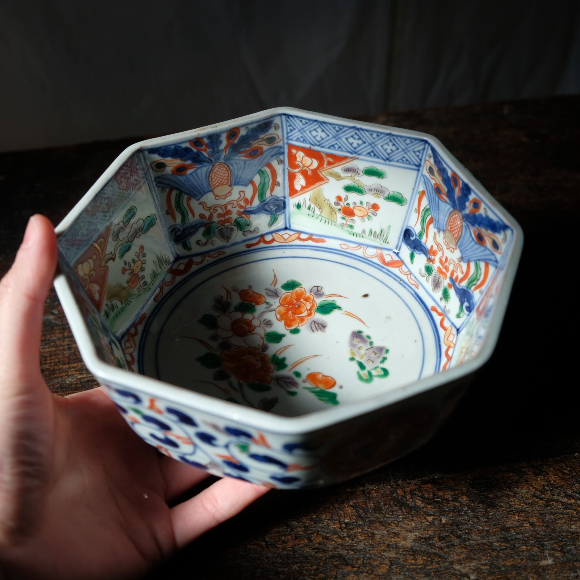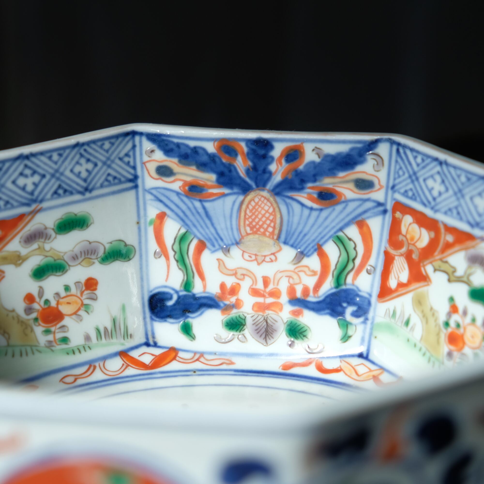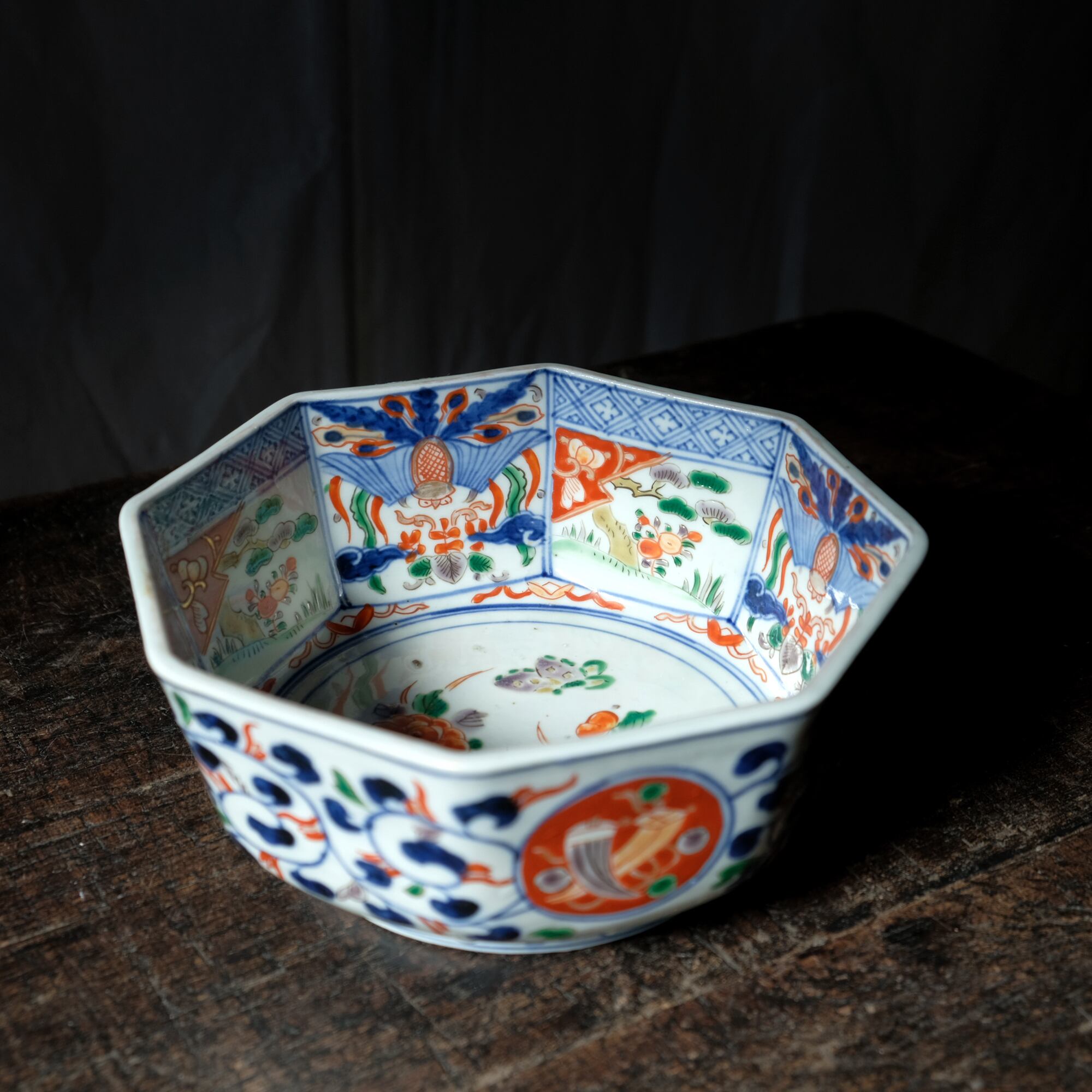 八角という素敵な形状に中国古美術の影響をとても受けている印象のある赤絵の絵付け。