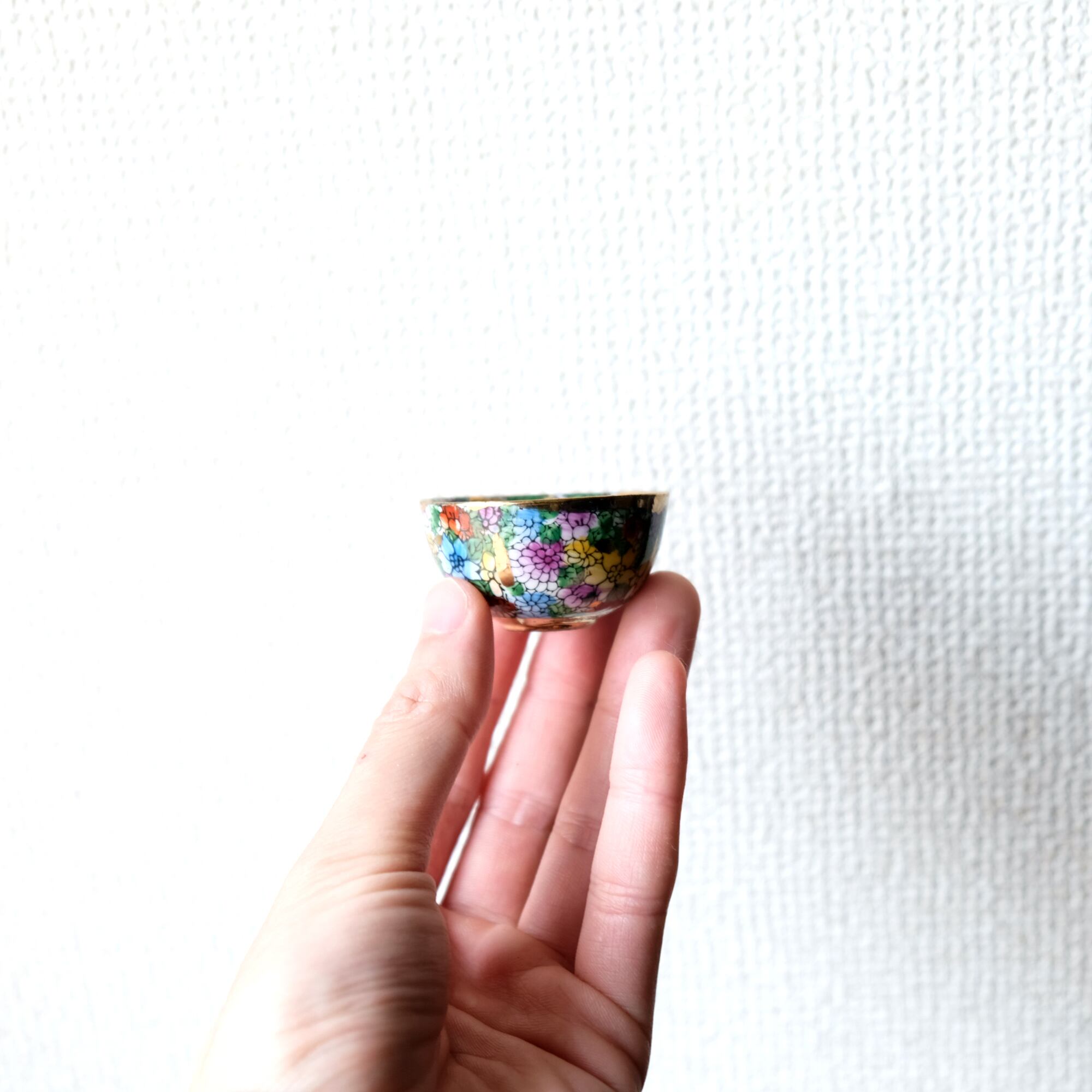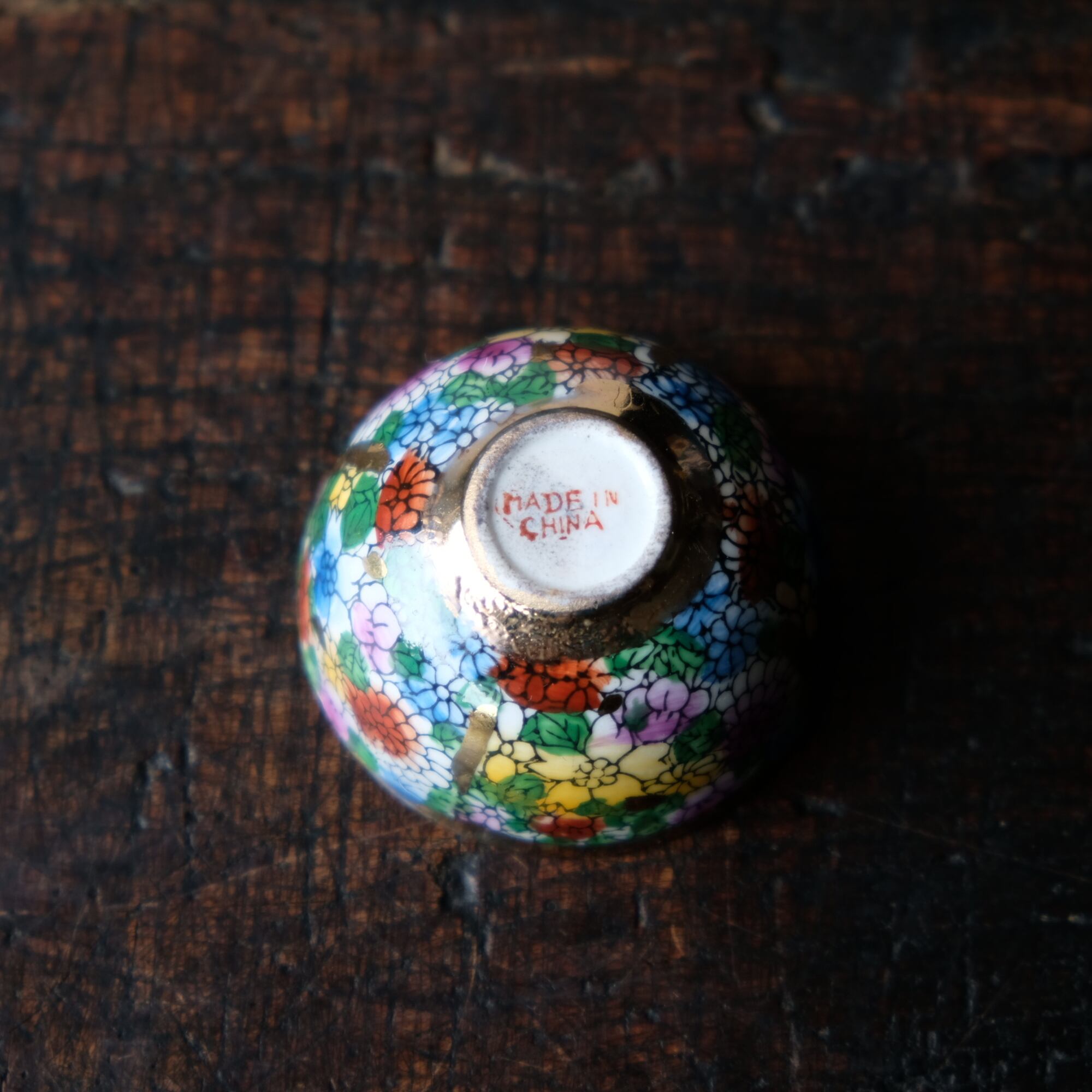 見込みに子(鼠)◆チャイナレトロで可愛い。中国産 干支 色絵金彩小ぶり猪口 花尽くし。シノワズリ