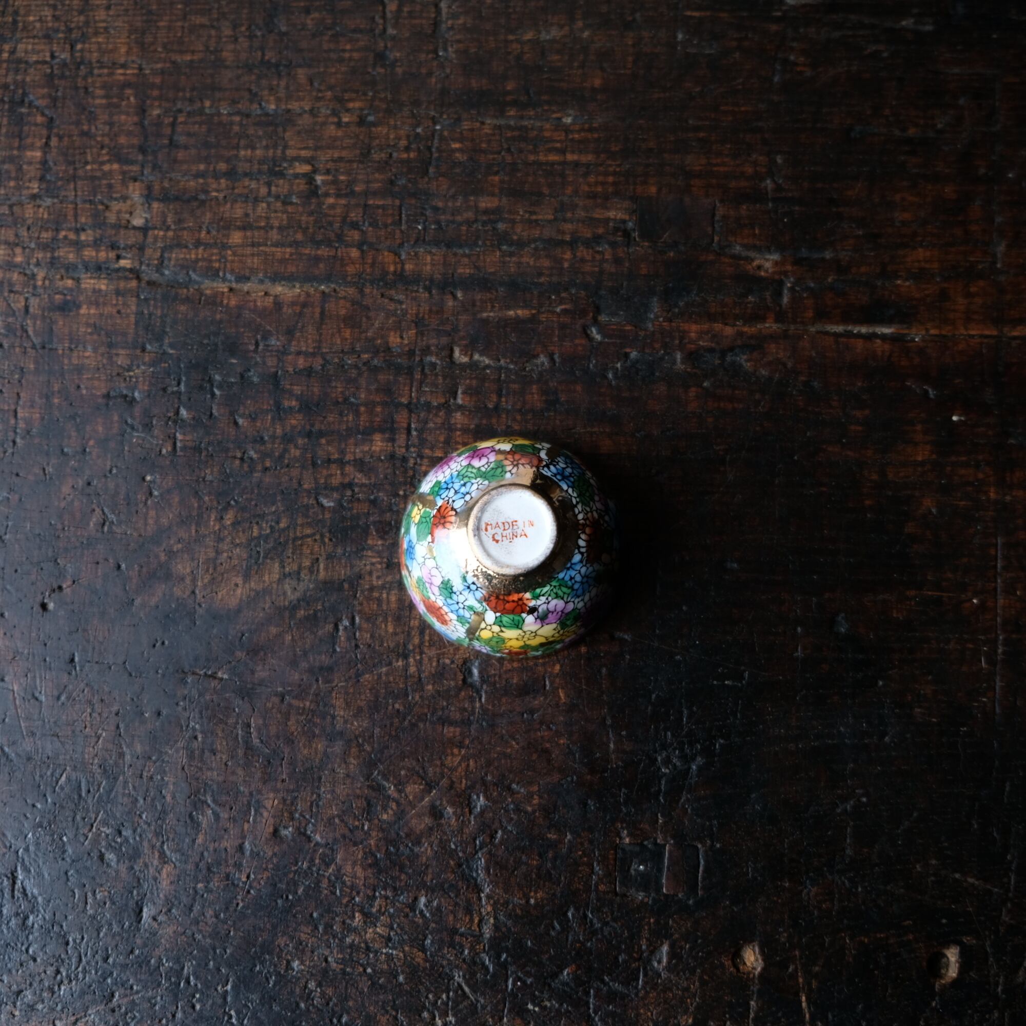 見込みに寅(虎)◆ チャイナレトロで可愛い。中国産 干支 色絵金彩小ぶり猪口 花尽くし。シノワズリ