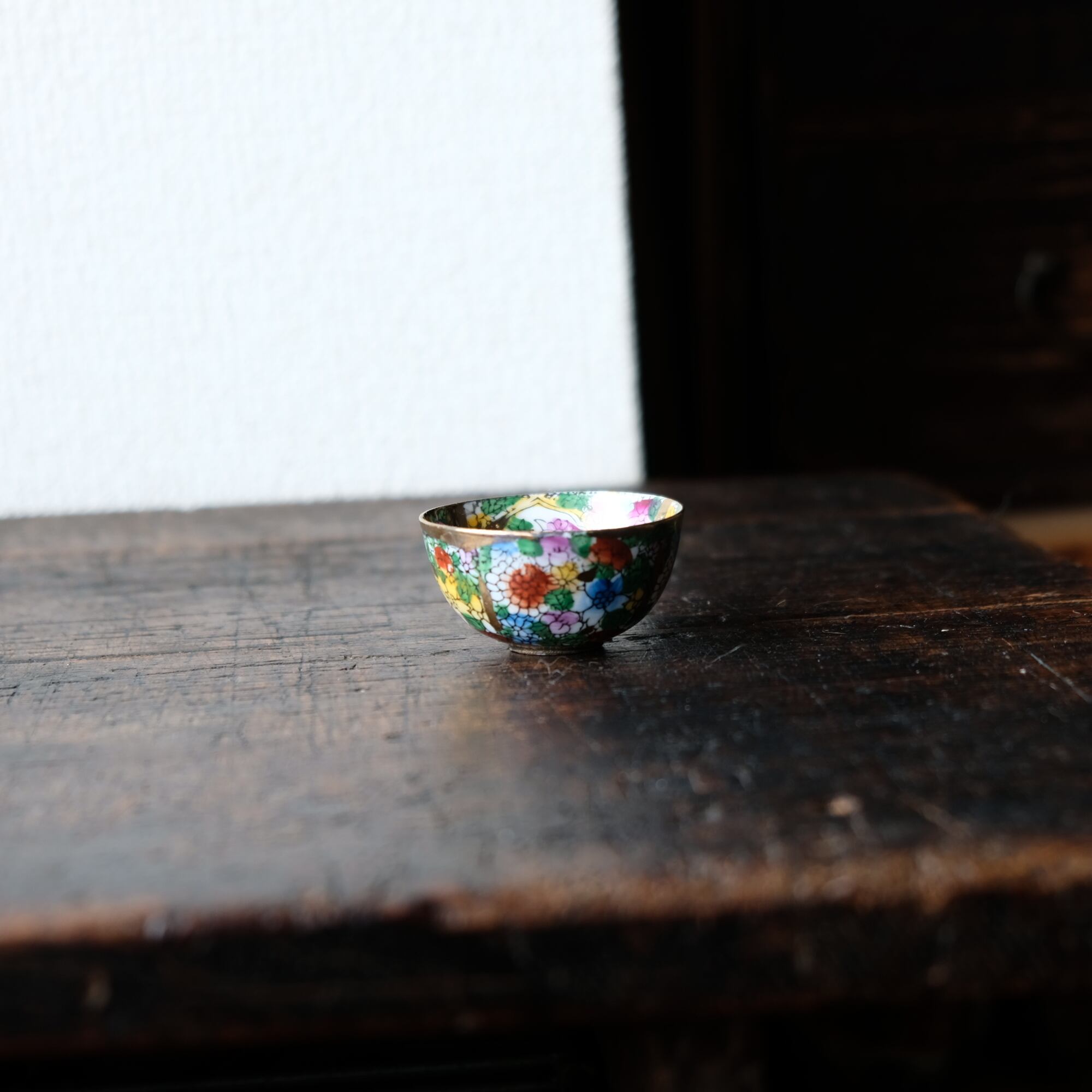 見込みに辰(龍)◆チャイナレトロで可愛い。中国産 干支 色絵金彩小ぶり猪口 花尽くし。シノワズリ