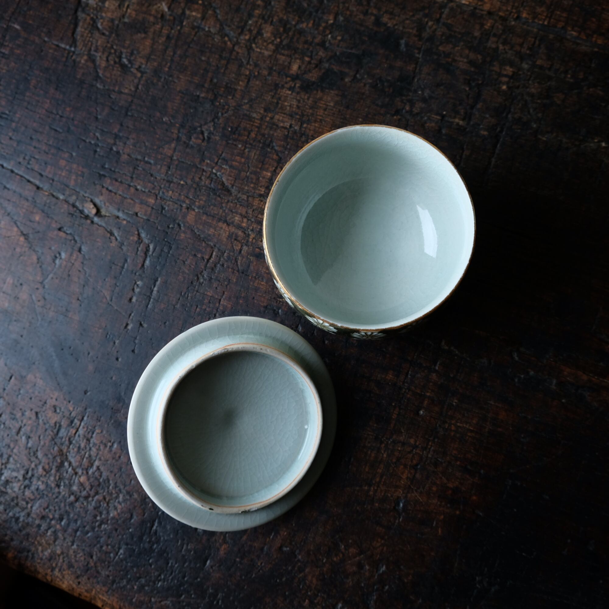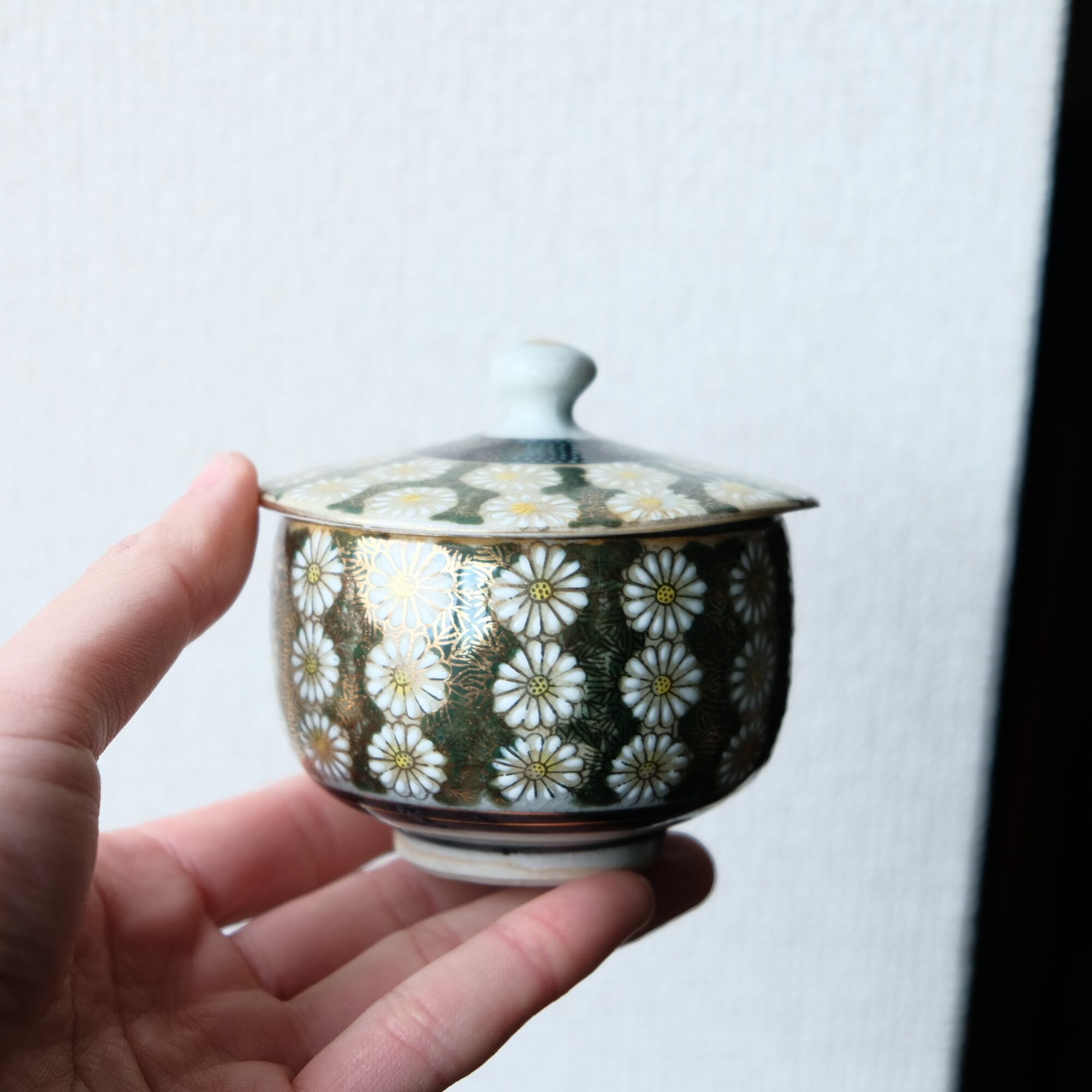 菊の花尽くし◆九谷焼 菊文色絵青粒金彩蓋付湯呑み 丁寧な暮らしに。昭和レトロ 骨董好きにも。