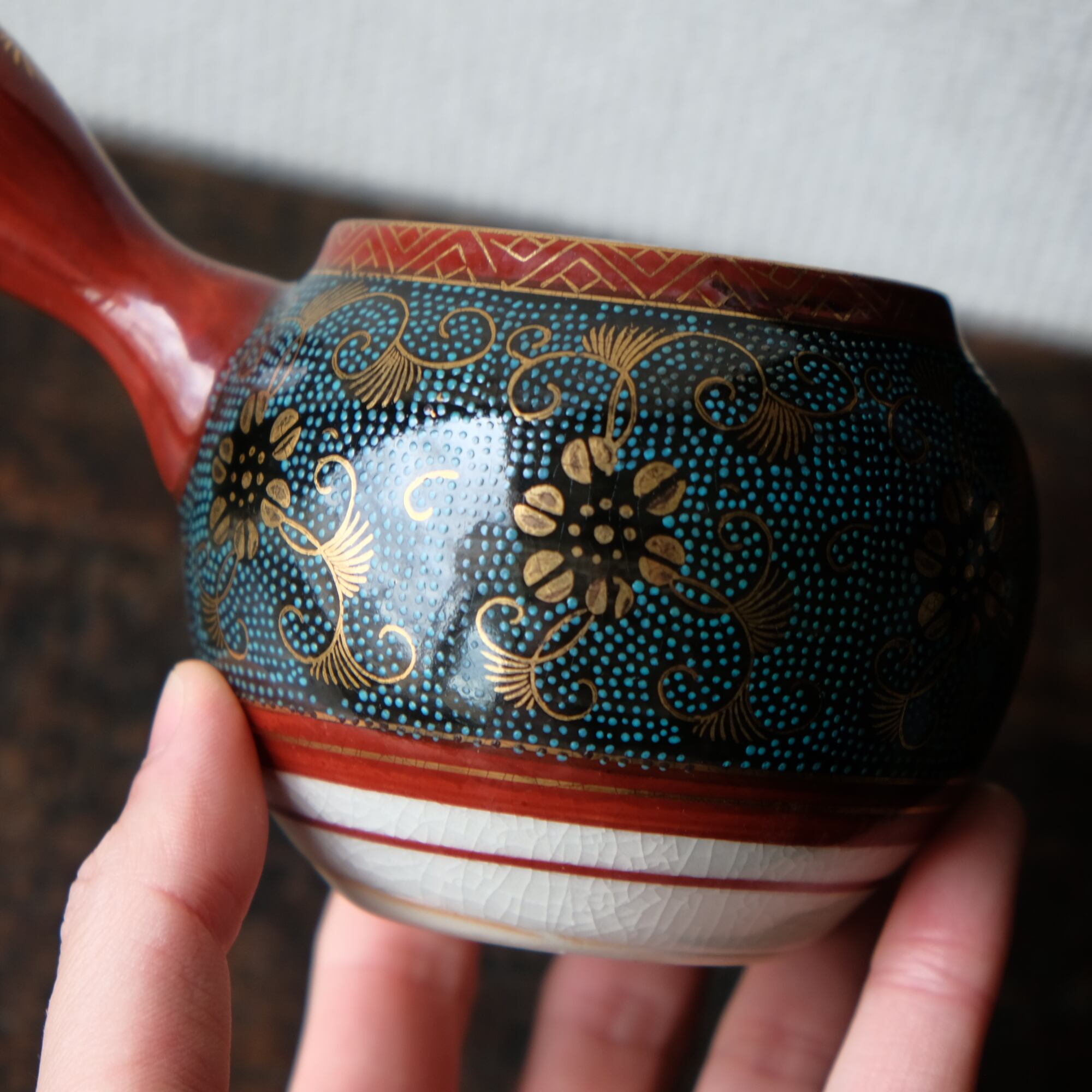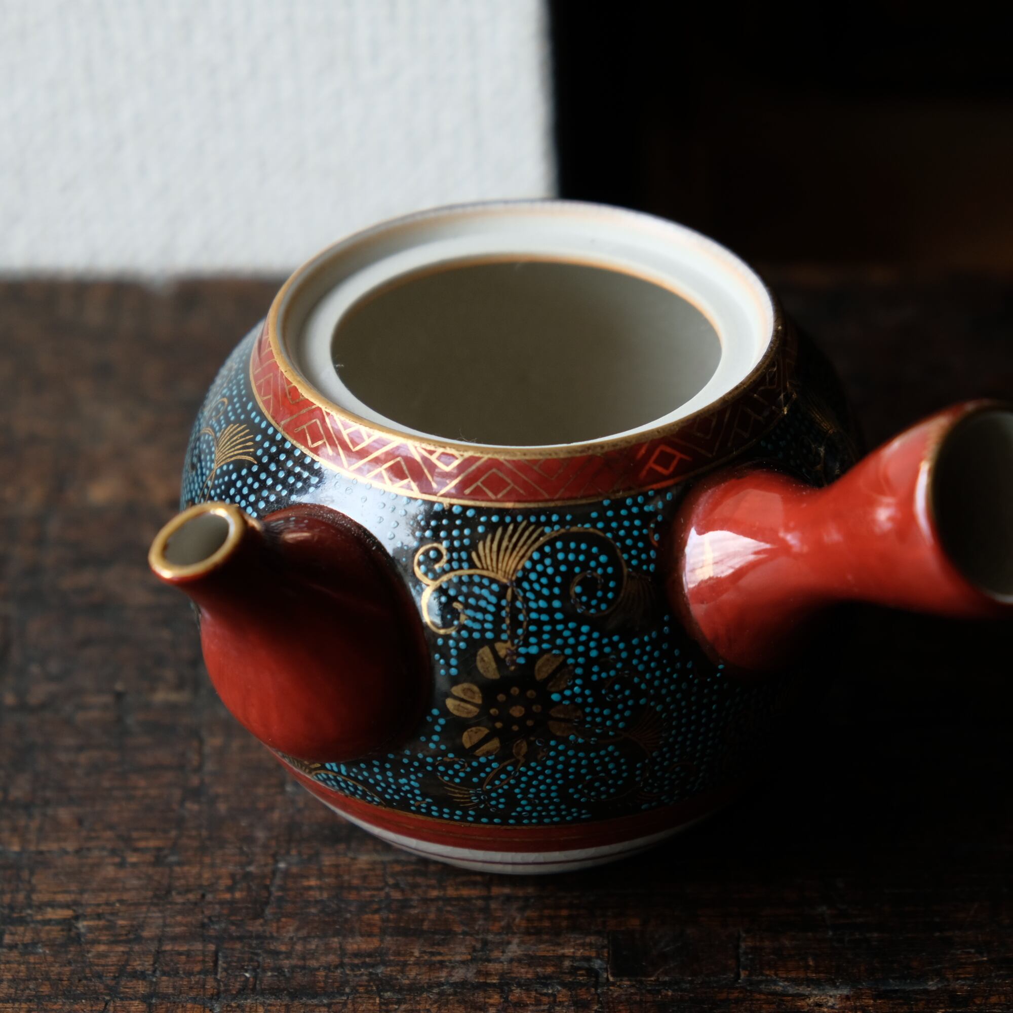 【アウトレット品】花唐草と青粒◆九谷焼 青粒金彩急須 茶器 暮らし 工芸品 昭和レトロ 骨董好きにも