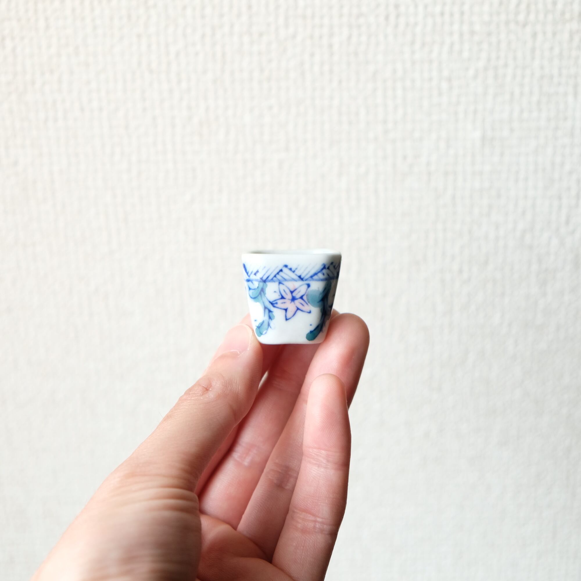 シノワズリな雰囲気◇中国産 花唐草文色絵小ぶり猪口 煎茶茶器 インテリア オブジェ チャイナレトロ