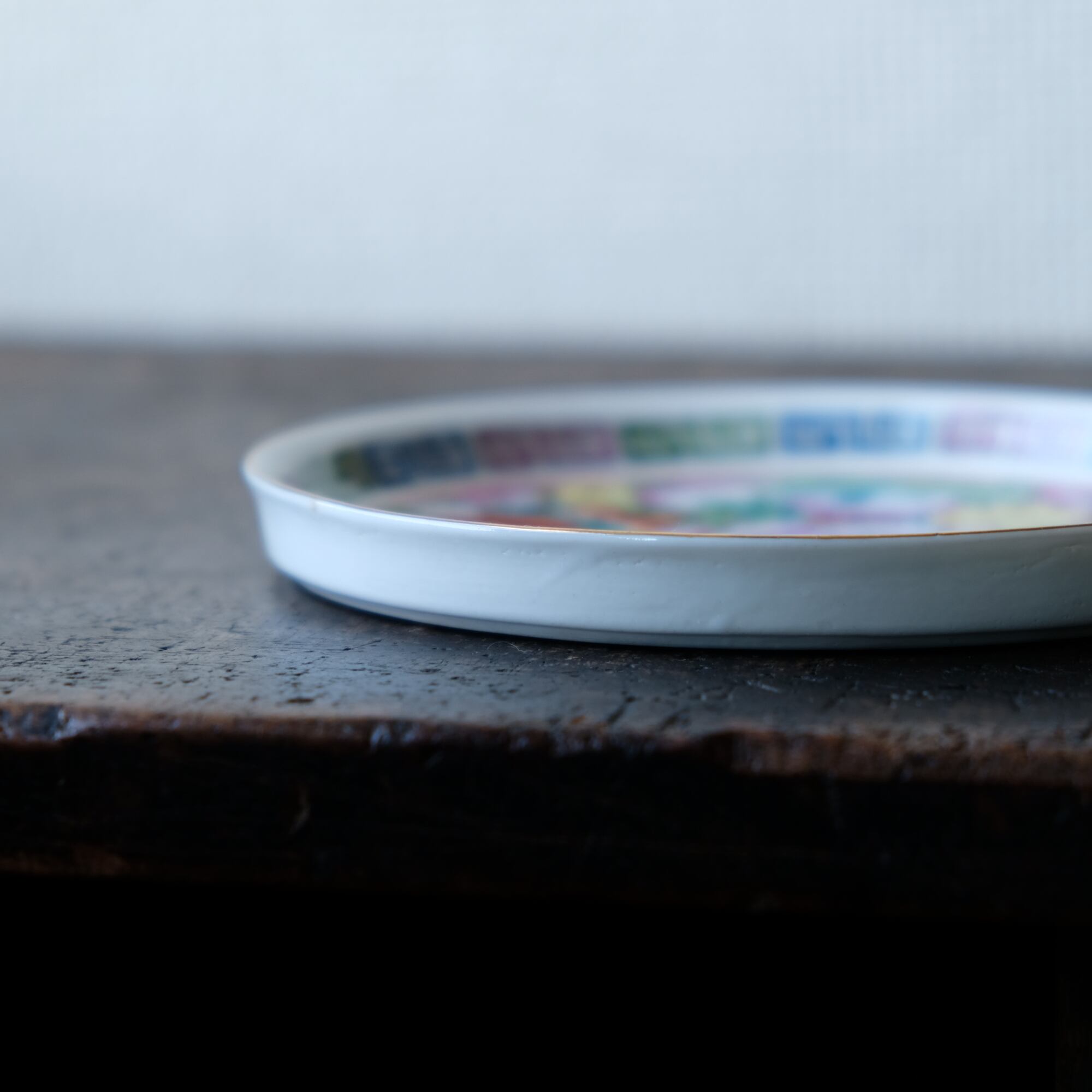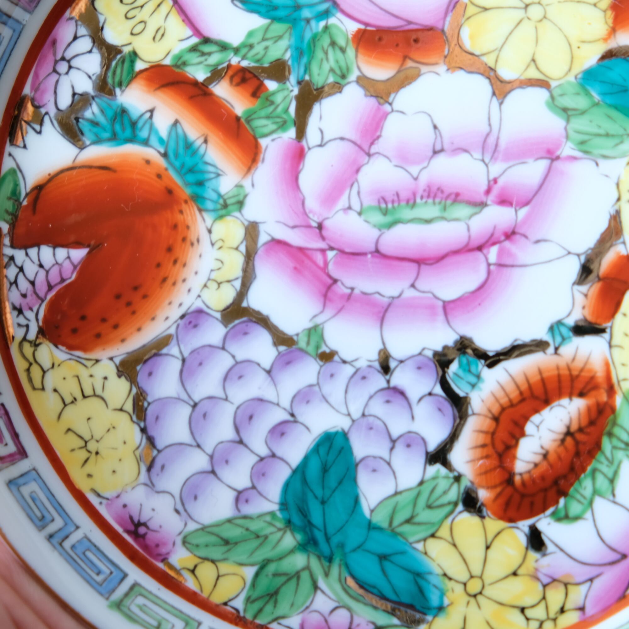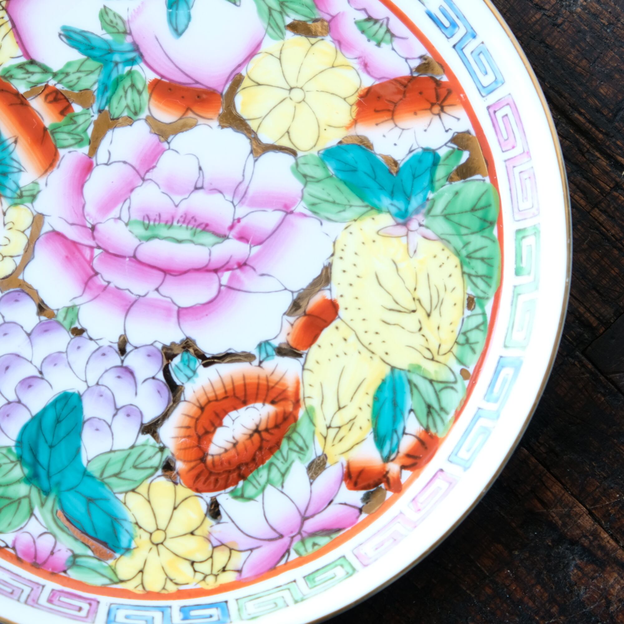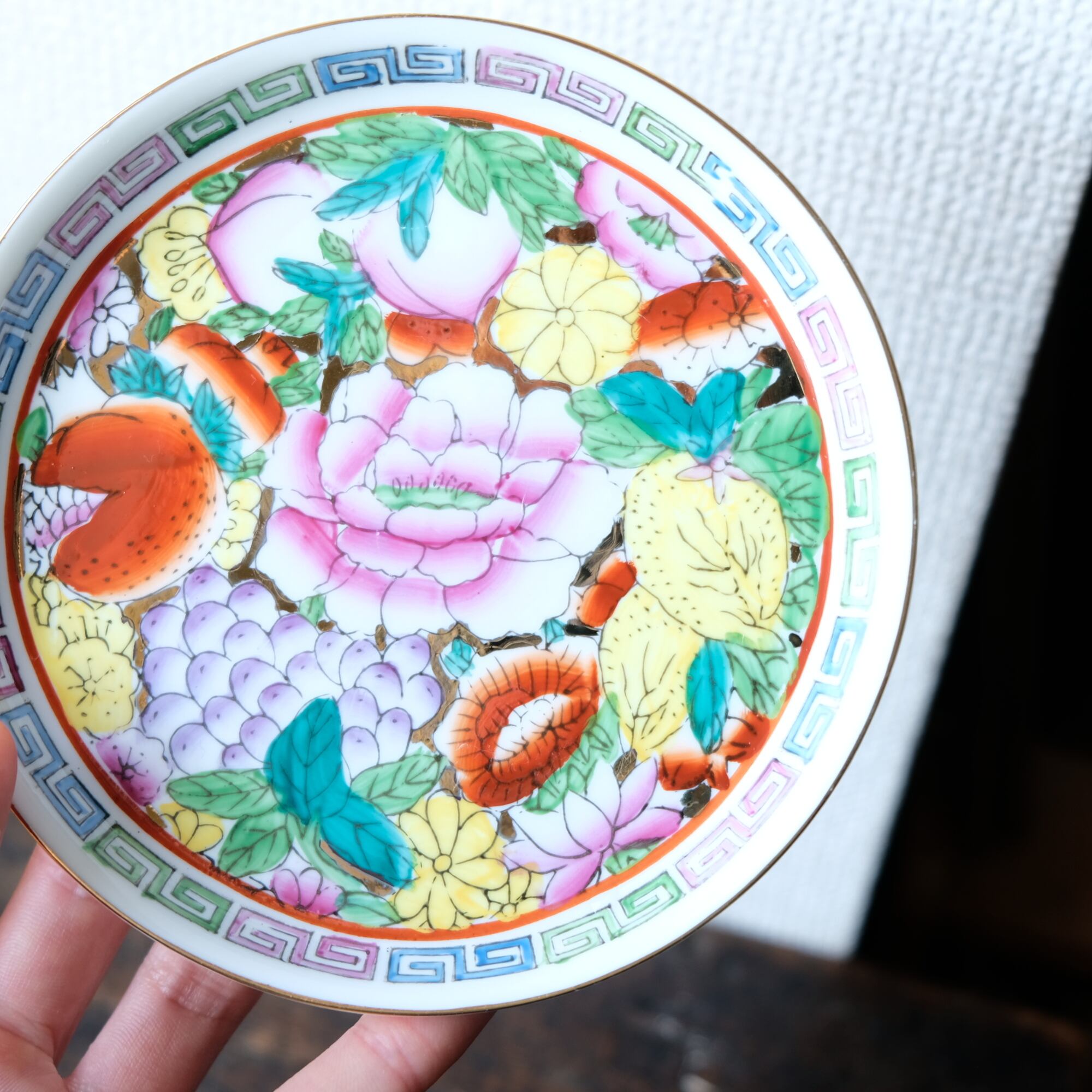 カラフルな花や果実◆中国産 果実文色絵金彩中皿プレート チャイナレトロ インテリア シノワズリ