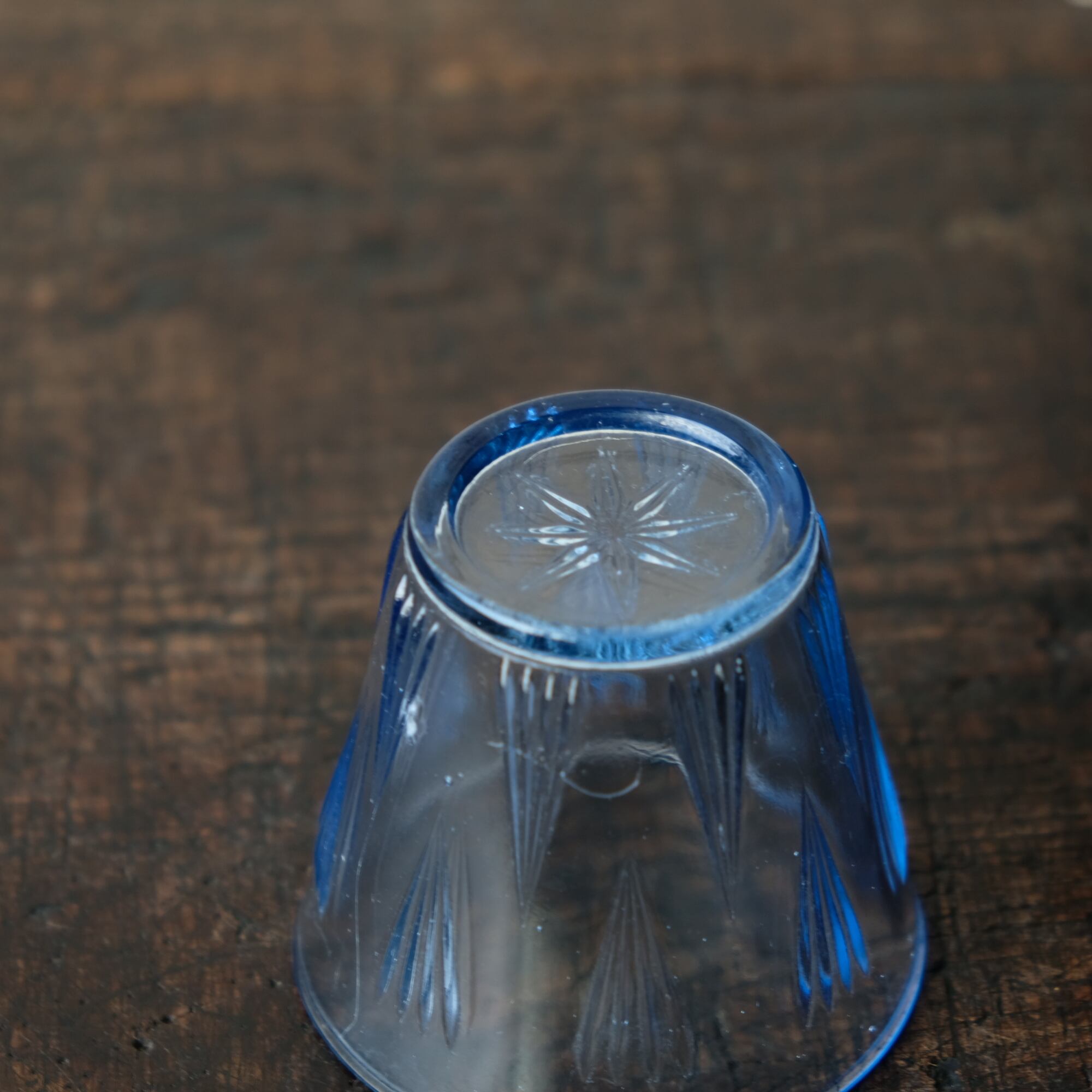 薄いブルーで可愛い◇プレスガラス蕎麦猪口 グラス 昭和前〜中期 古道具 レトロ ニュートロ 丁寧な暮らしに。