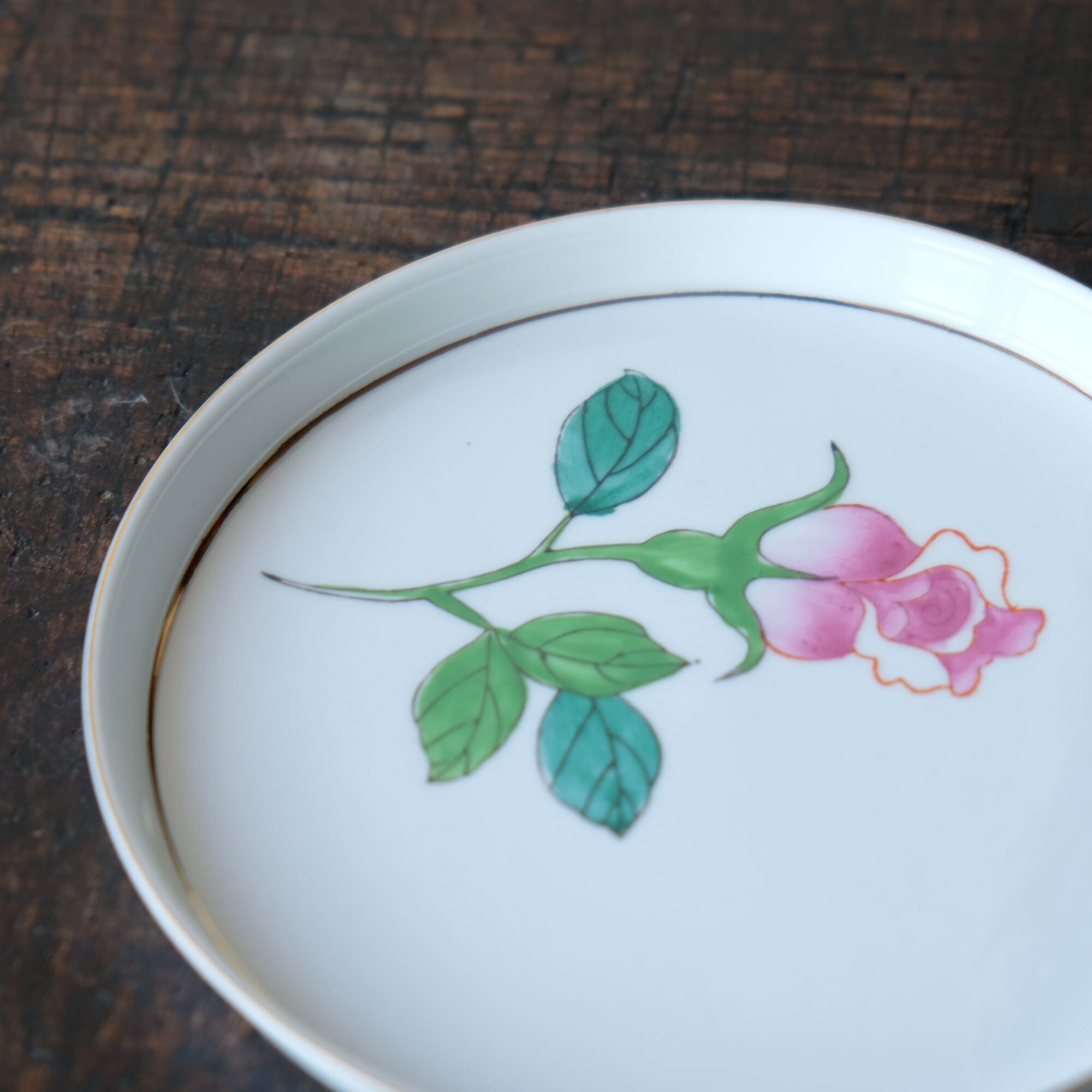 シンプルで素敵◆中国産 花文色絵金彩中皿プレート 飾り皿 小物置き チャイナレトロ シノワズリ