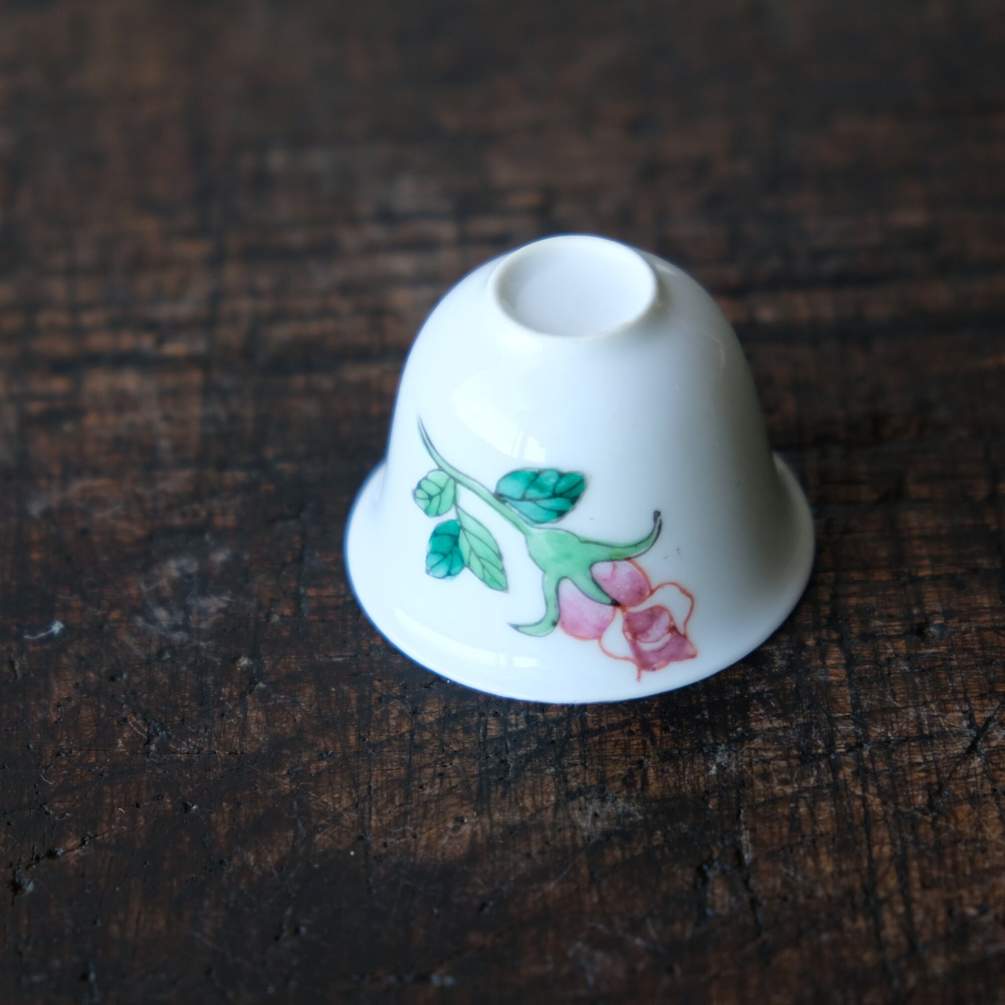 シンプルで素敵◆中国産 花文色絵小ぶり猪口 茶杯 オブジェ チャイナレトロ シノワズリ