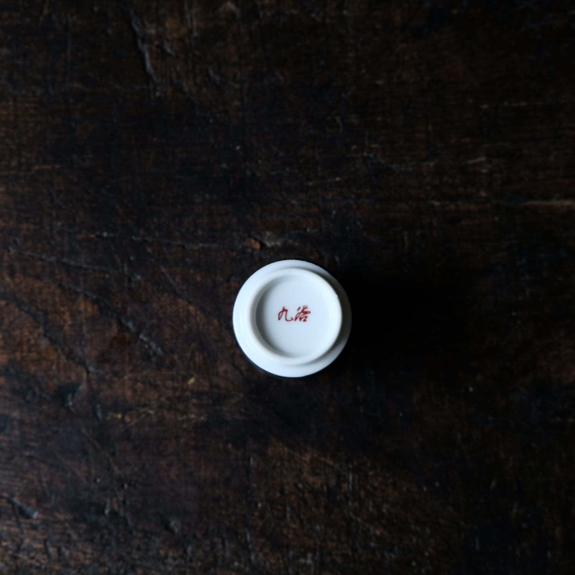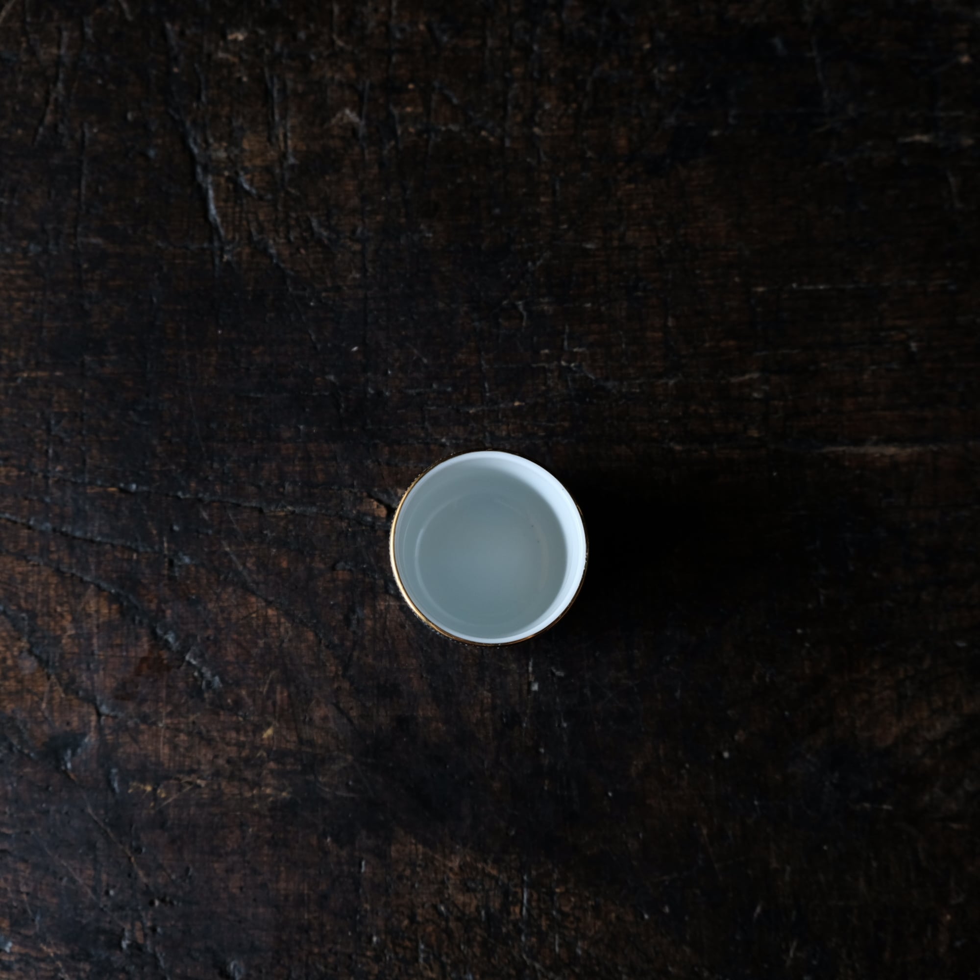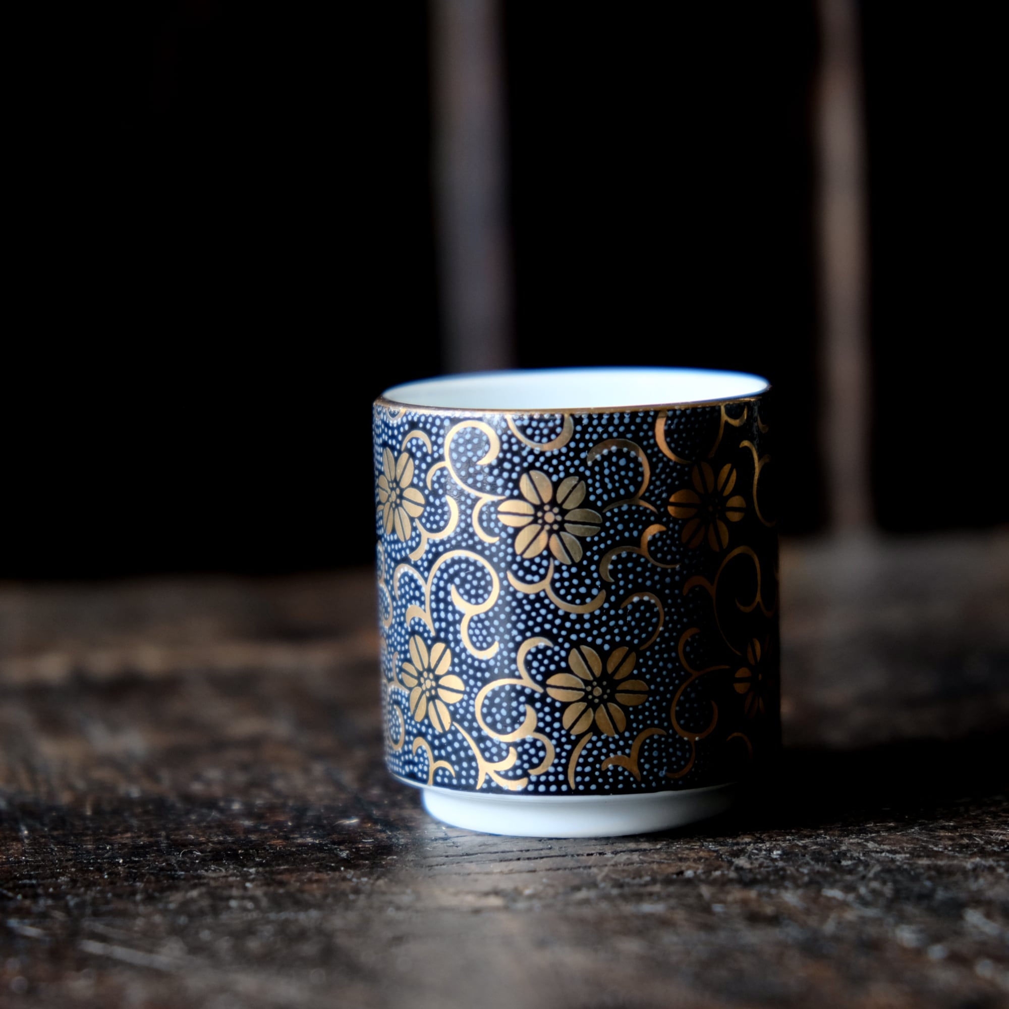 花唐草と青粒◆九谷焼 青粒金彩覗き猪口 小ぶり 酒器 レトロ 転写 工芸品 インテリア