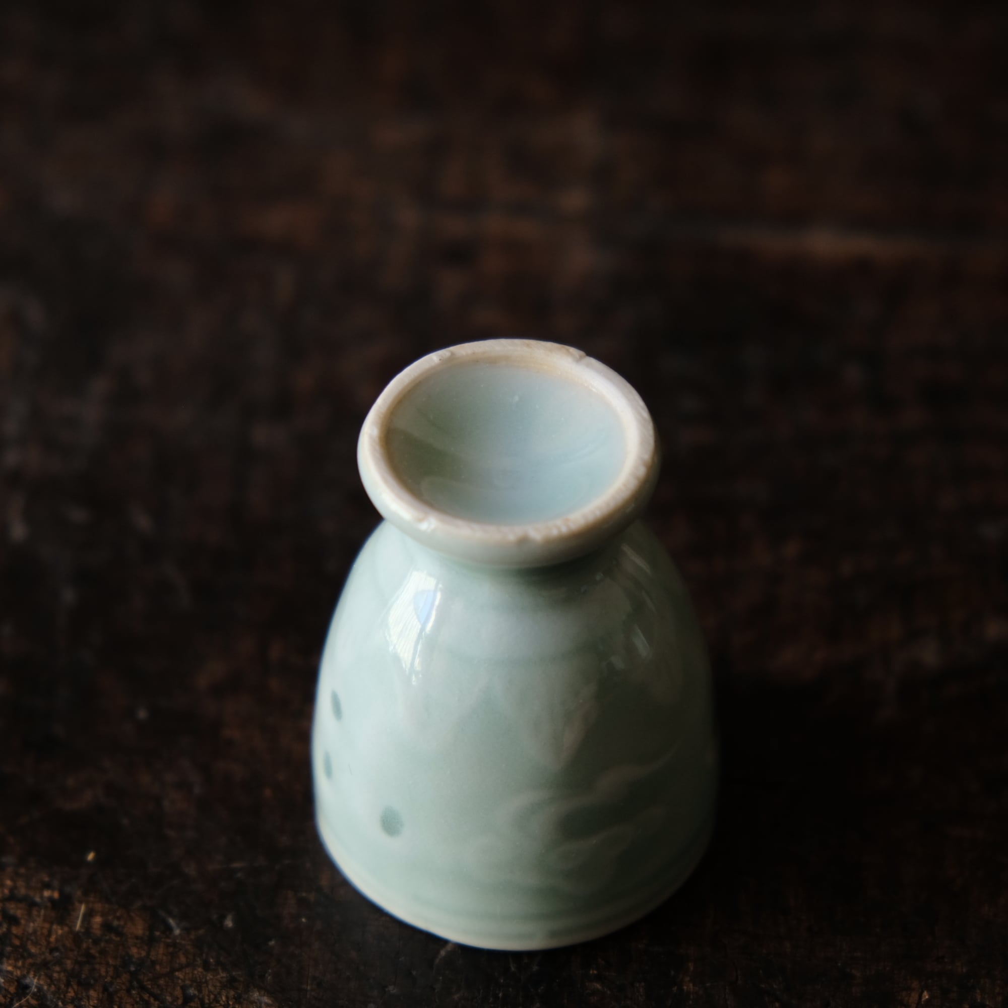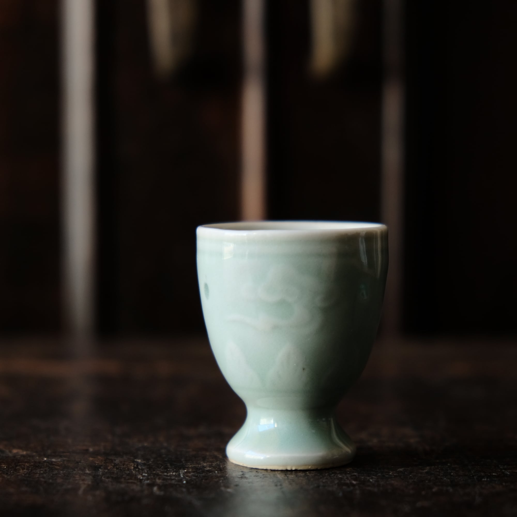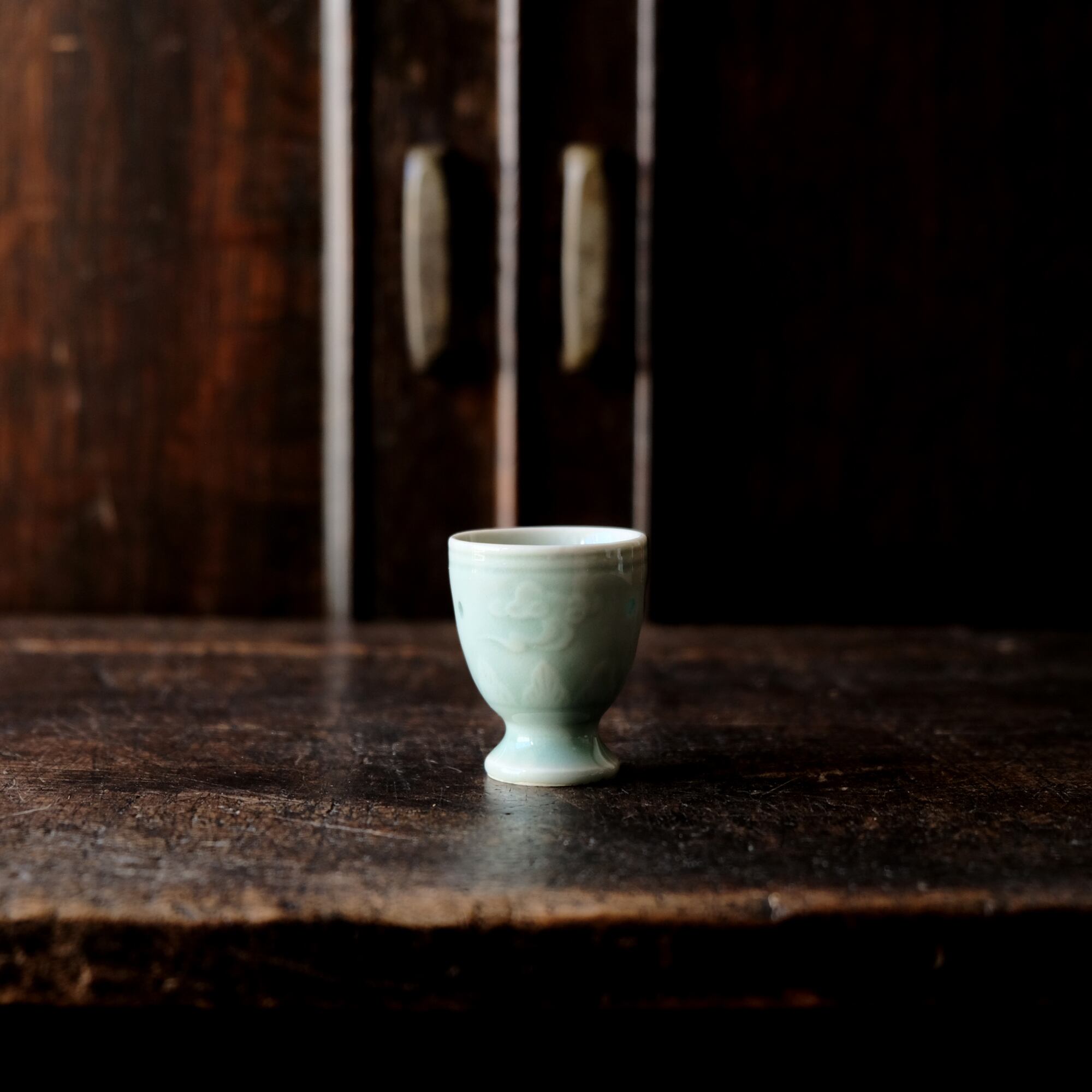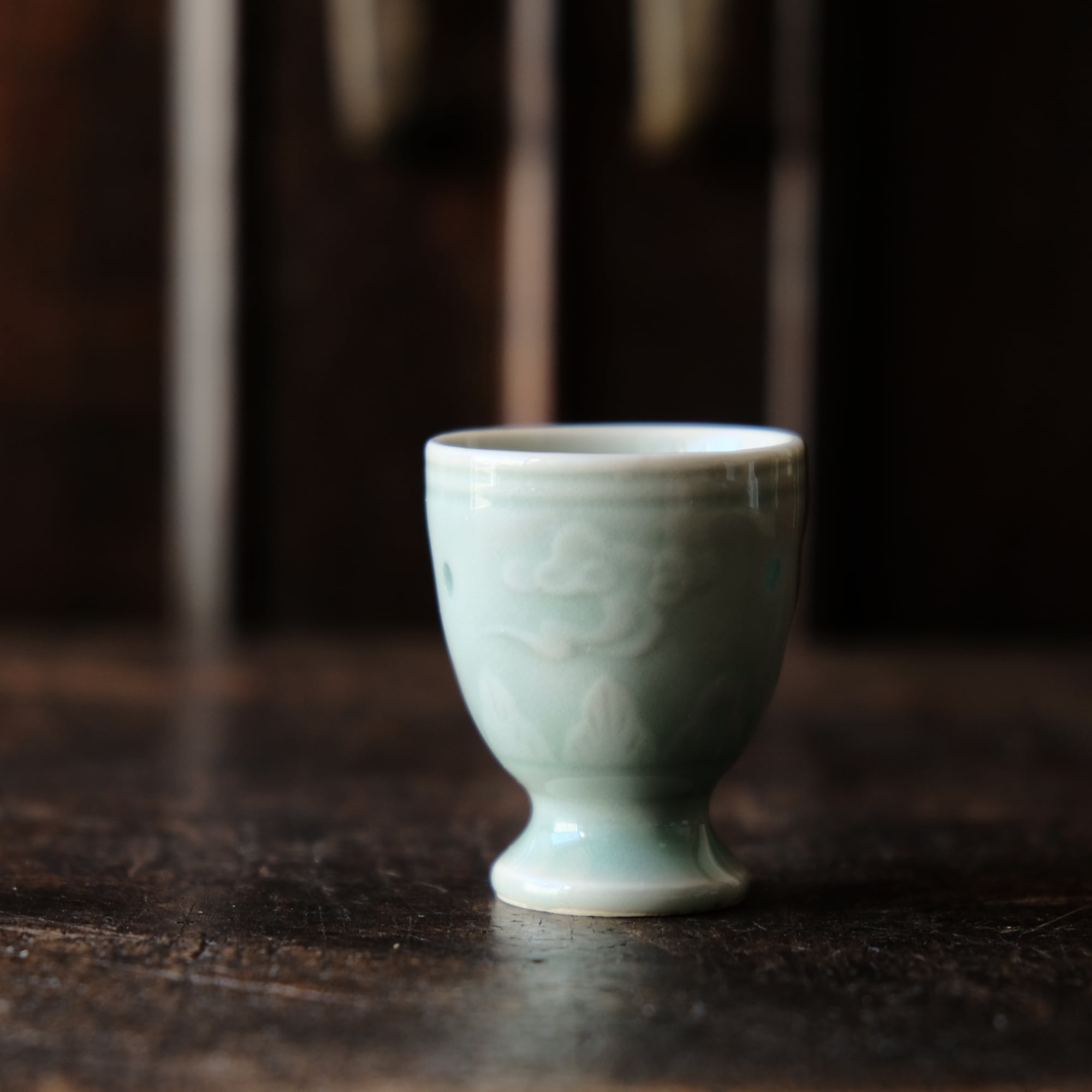 筋斗雲とリーフ◆青磁で素敵。中国産 蛍焼青磁猪口 酒器 丁寧な暮らしに。チャイナレトロ シノワズリ オブジェ
