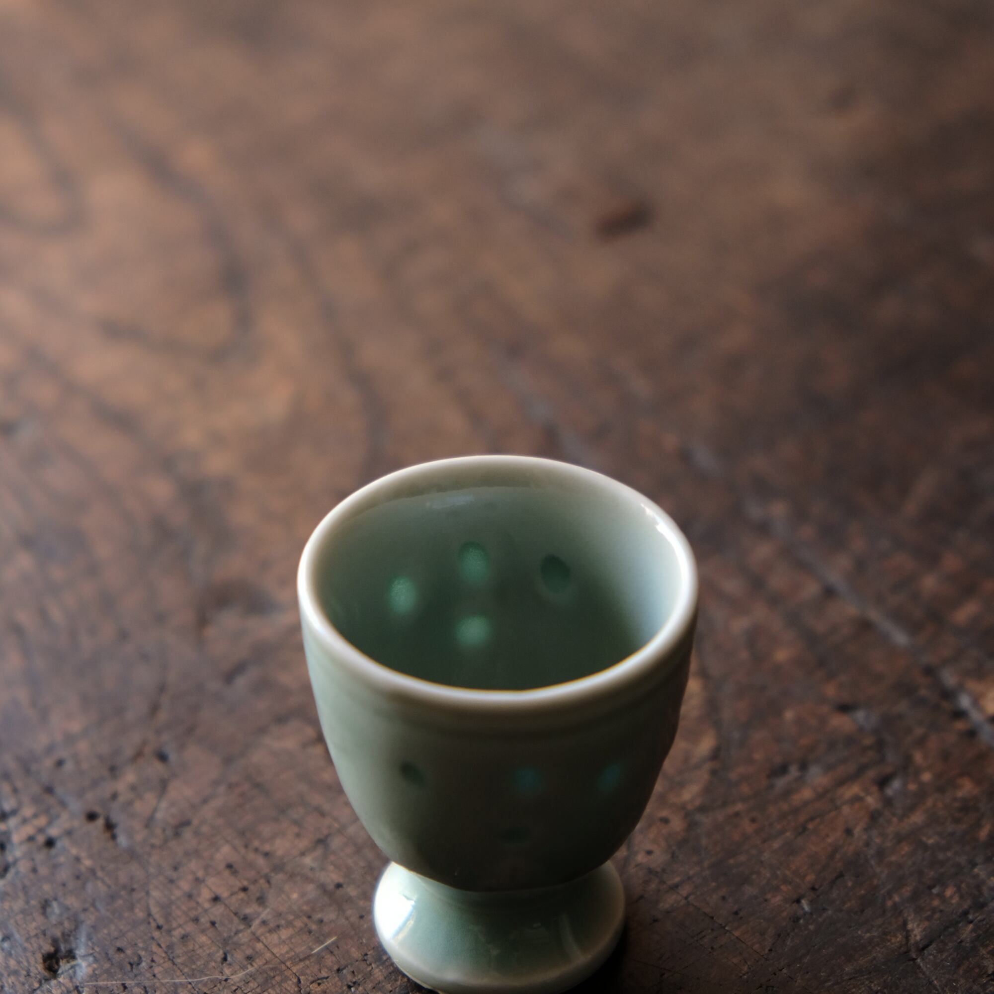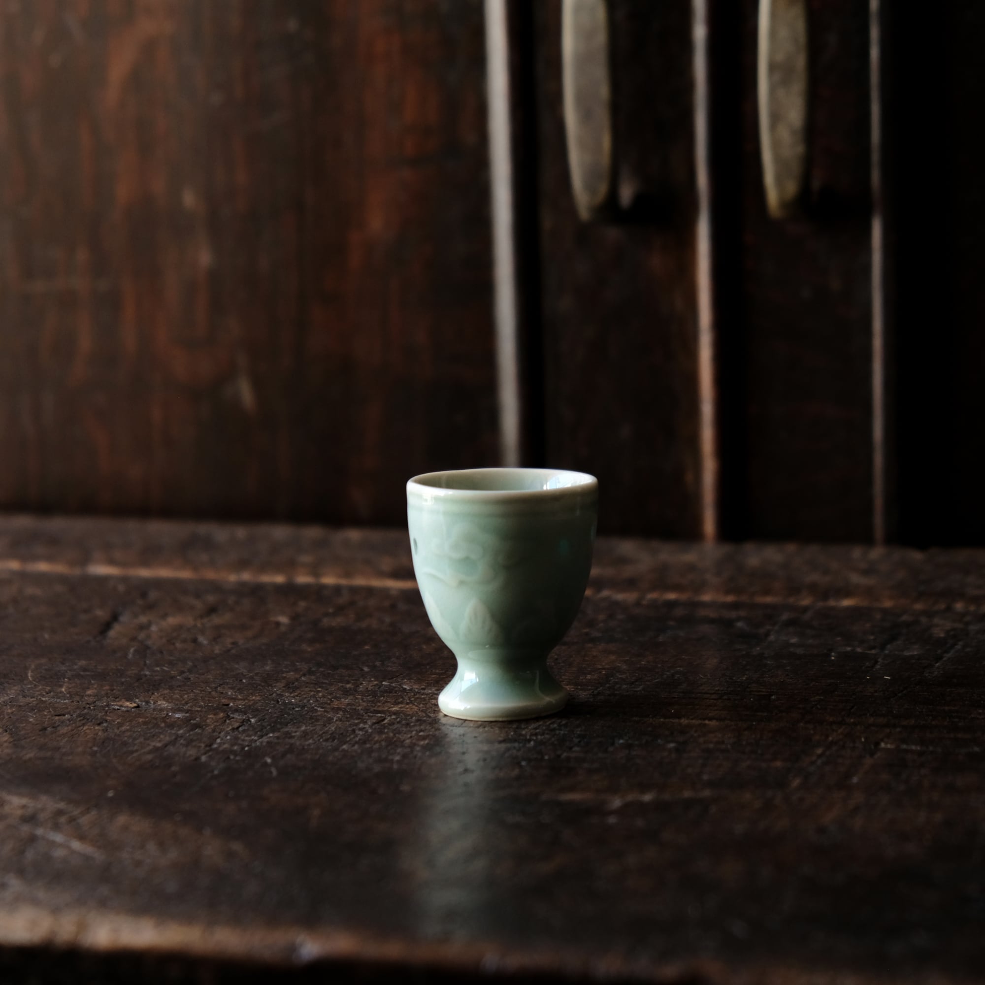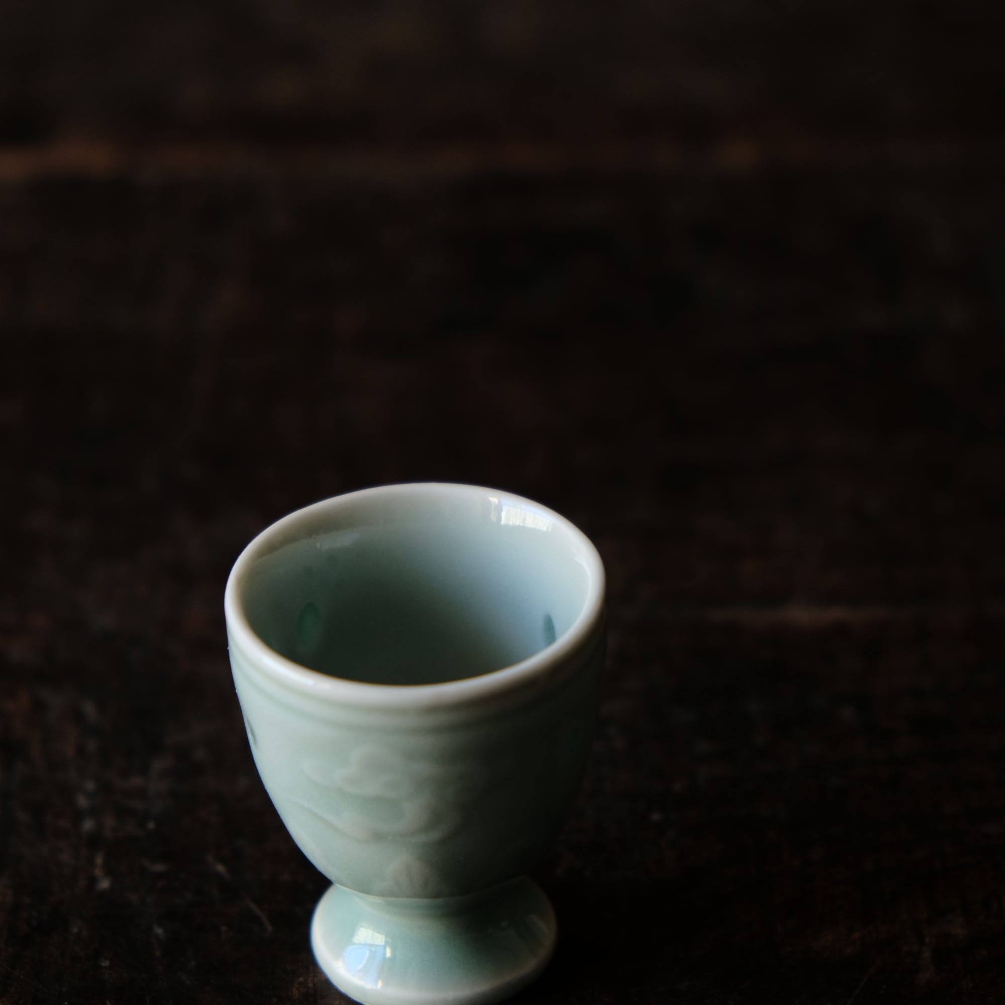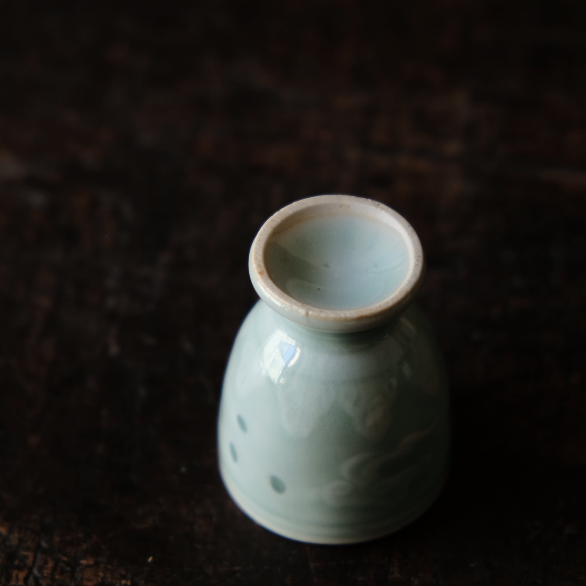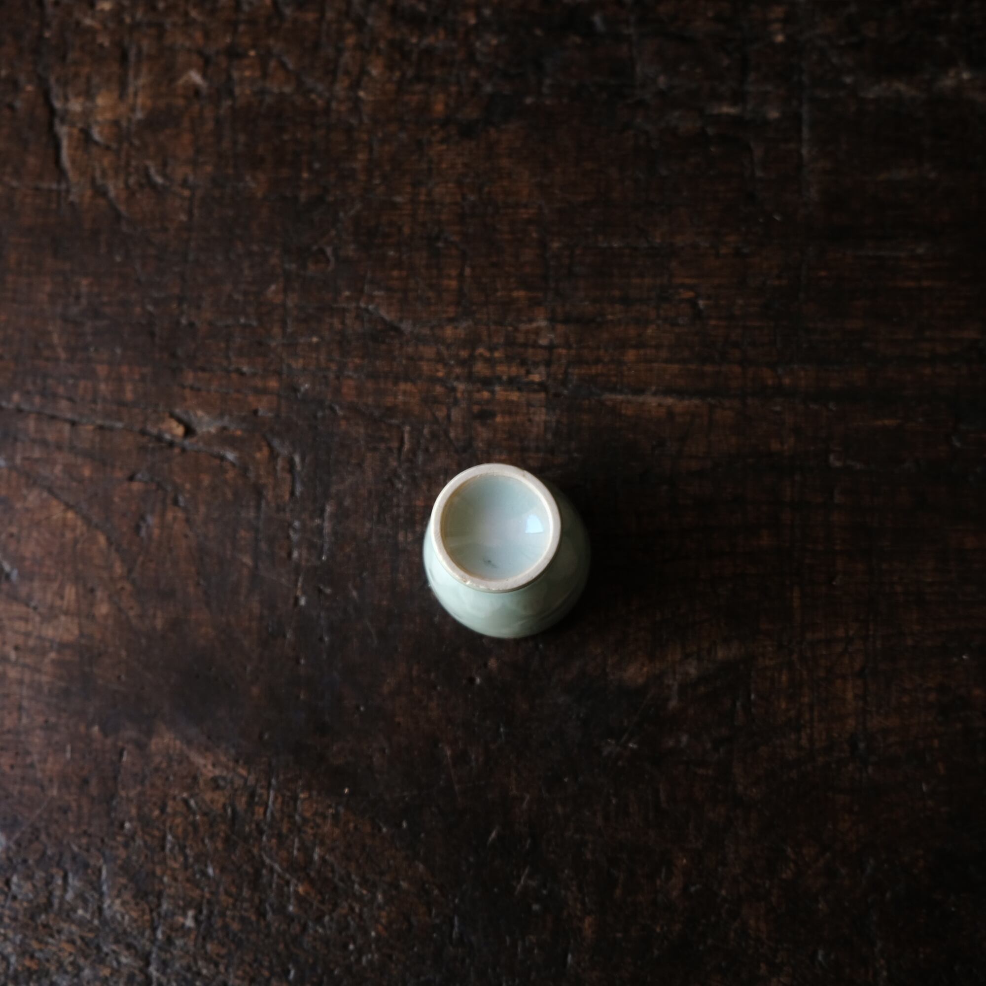 筋斗雲とリーフ◆青磁で素敵。中国産 蛍焼青磁猪口 酒器 丁寧な暮らしに。チャイナレトロ シノワズリ オブジェ