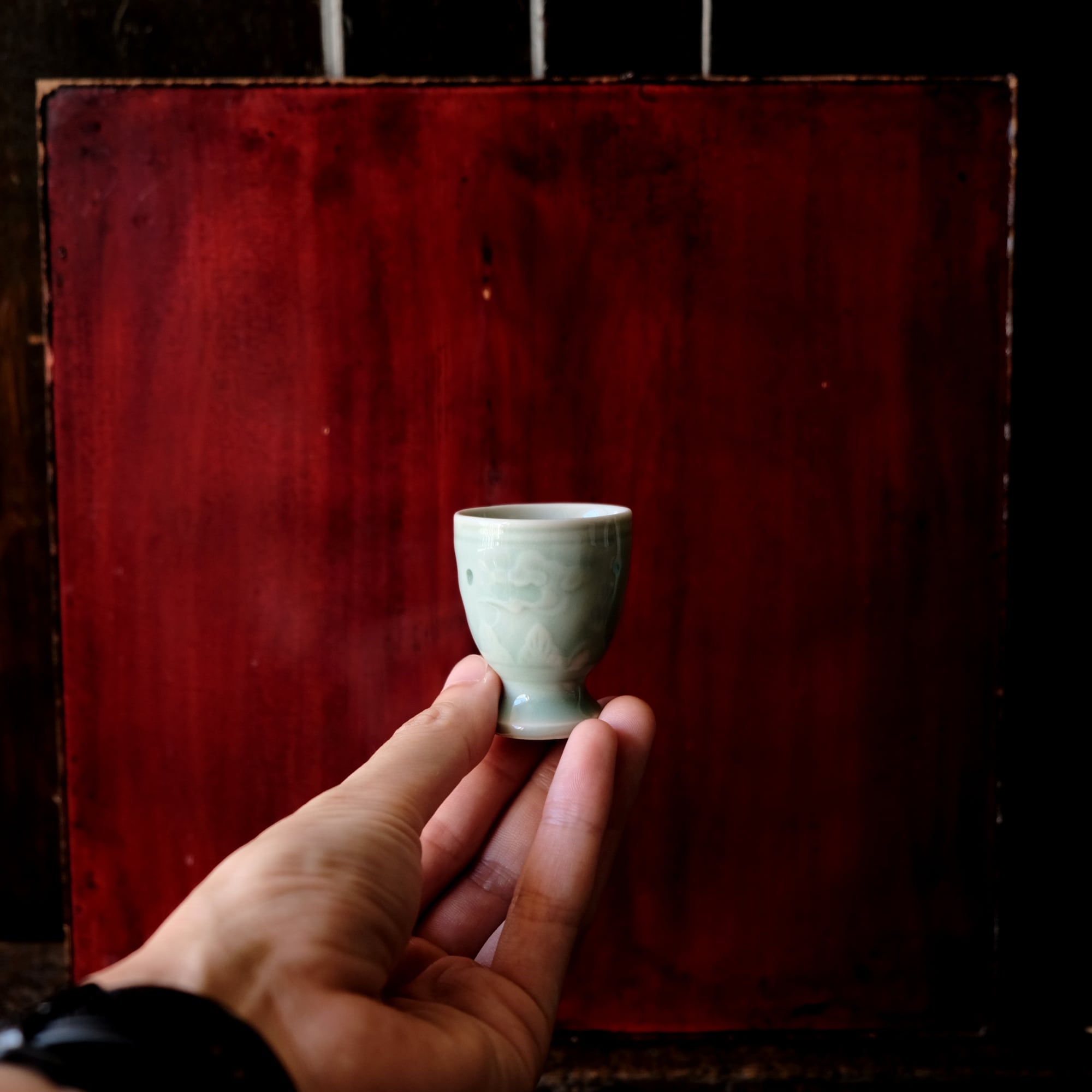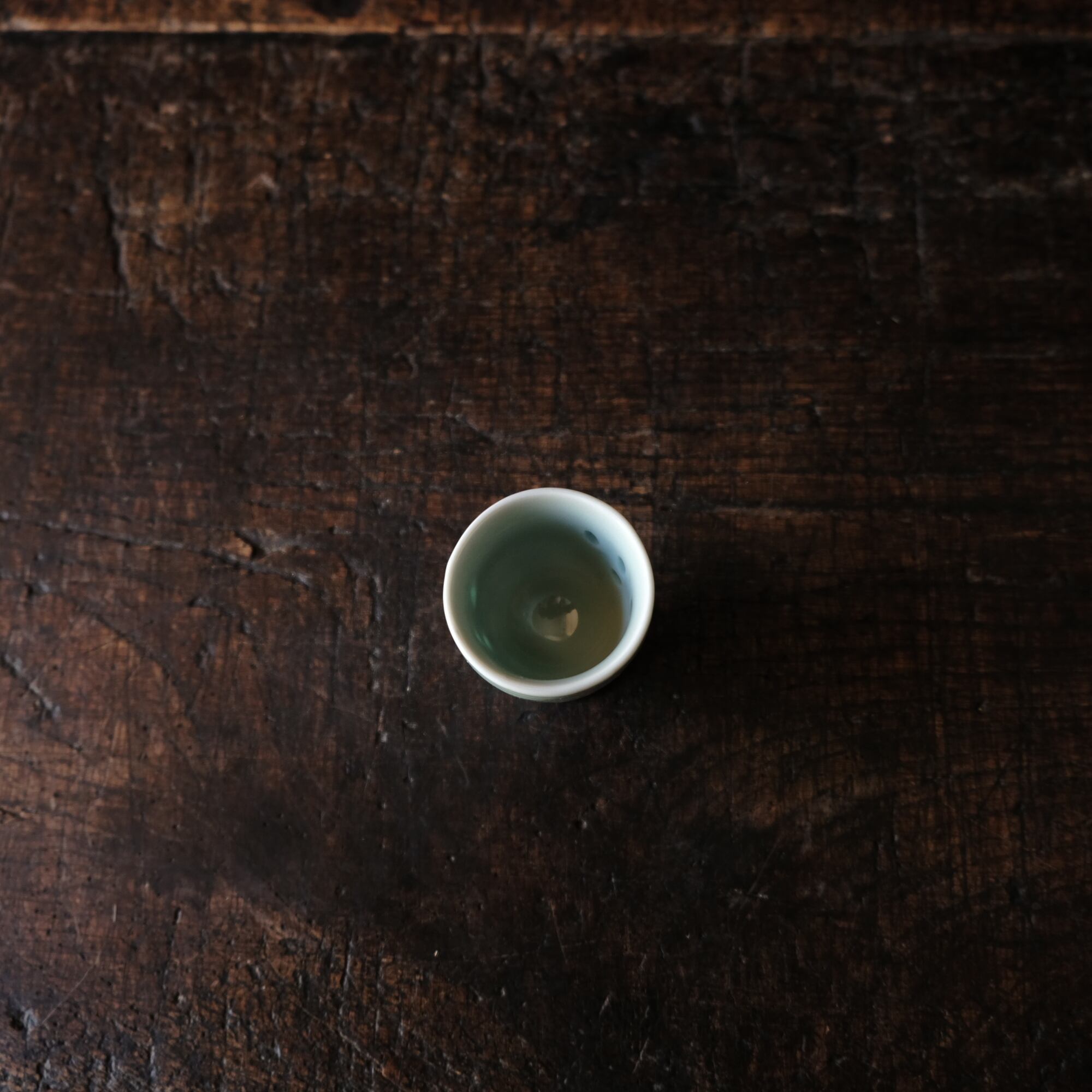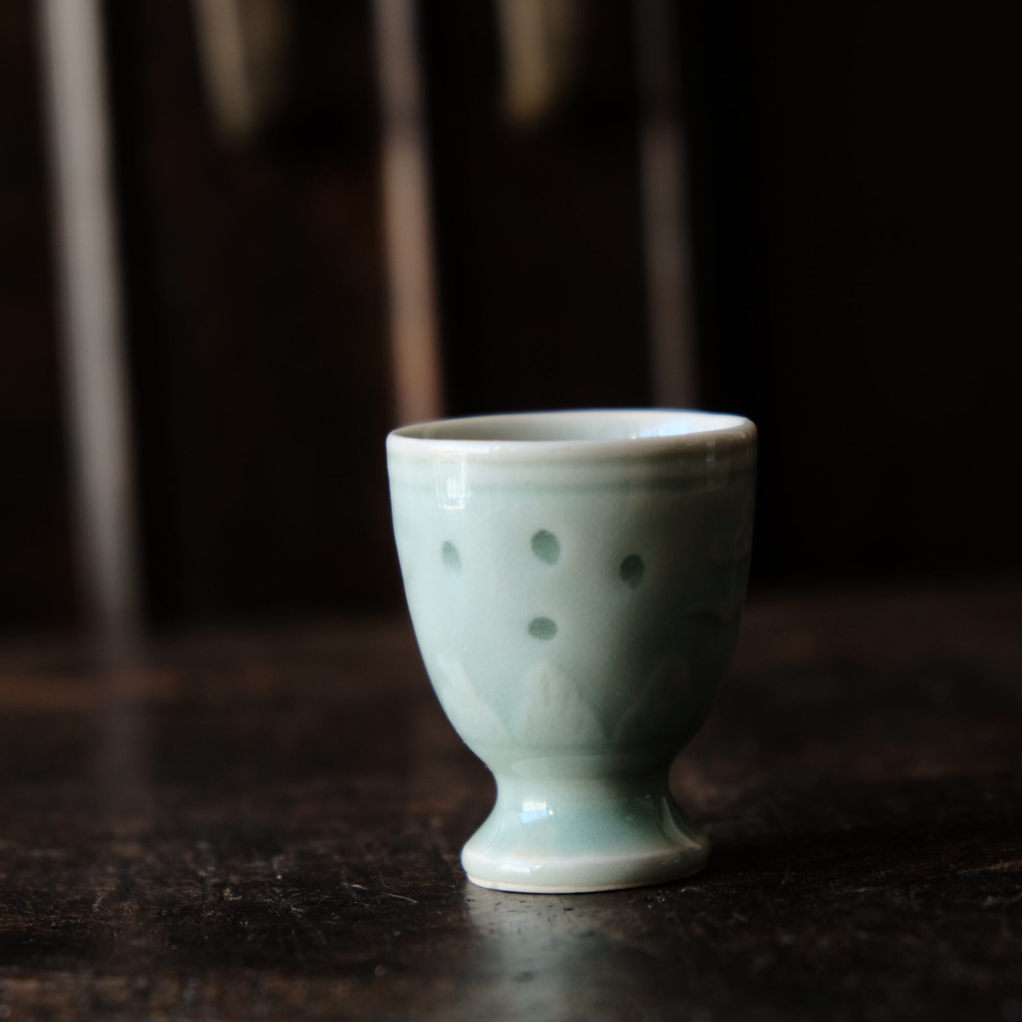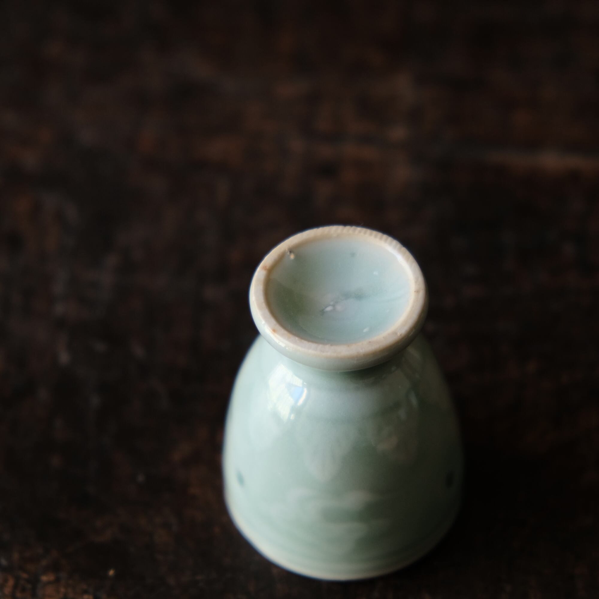 筋斗雲とリーフ◆青磁で素敵。中国産 蛍焼青磁猪口 酒器 丁寧な暮らしに。チャイナレトロ シノワズリ オブジェ