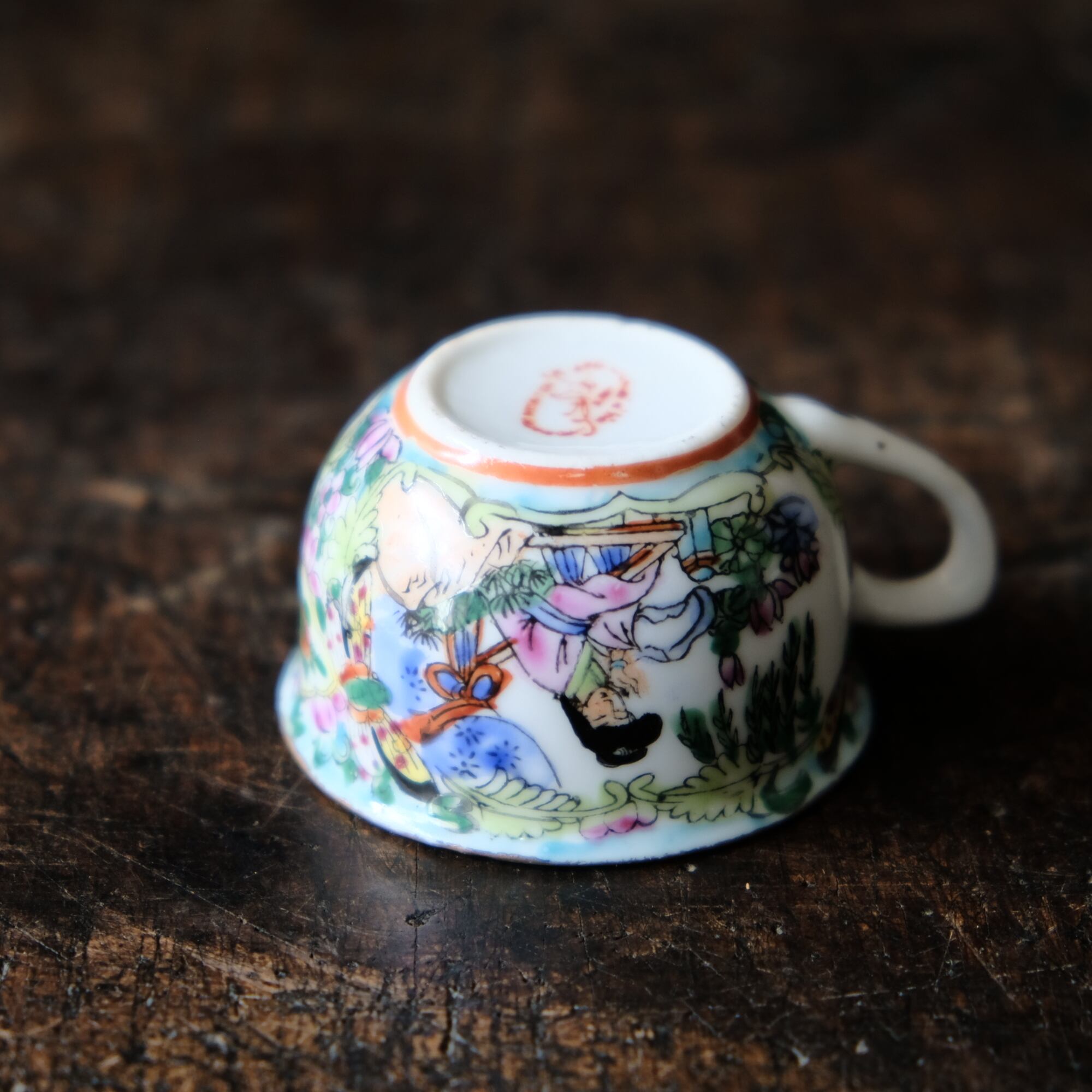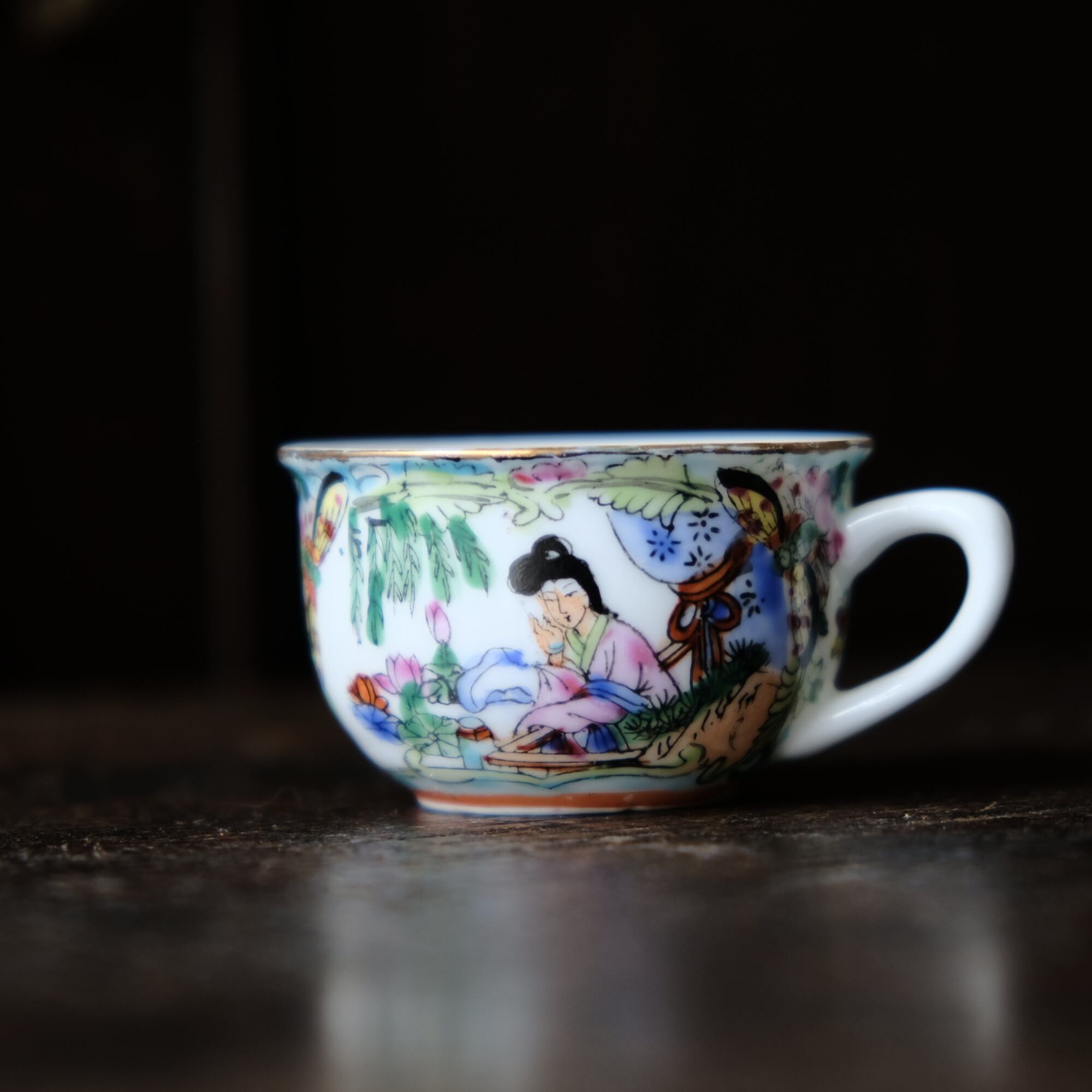 花と蝶と天女◆チャイナレトロで可愛い。中国産色絵金彩小ぶりカップ 器 チャイナレトロ シノワズリ 煎茶茶器