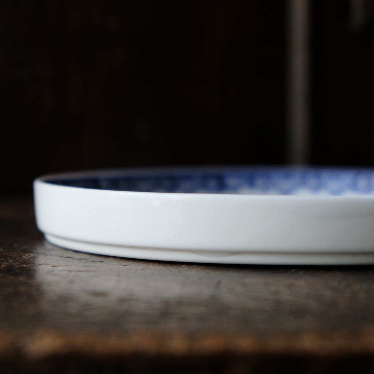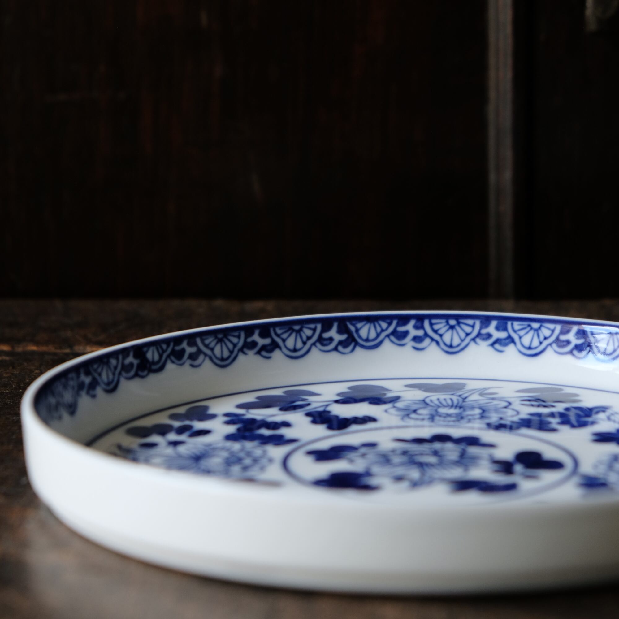 シノワズリな雰囲気◆草花で可愛い。中国産 花文染付中皿プレート チャイナレトロ 飾り皿