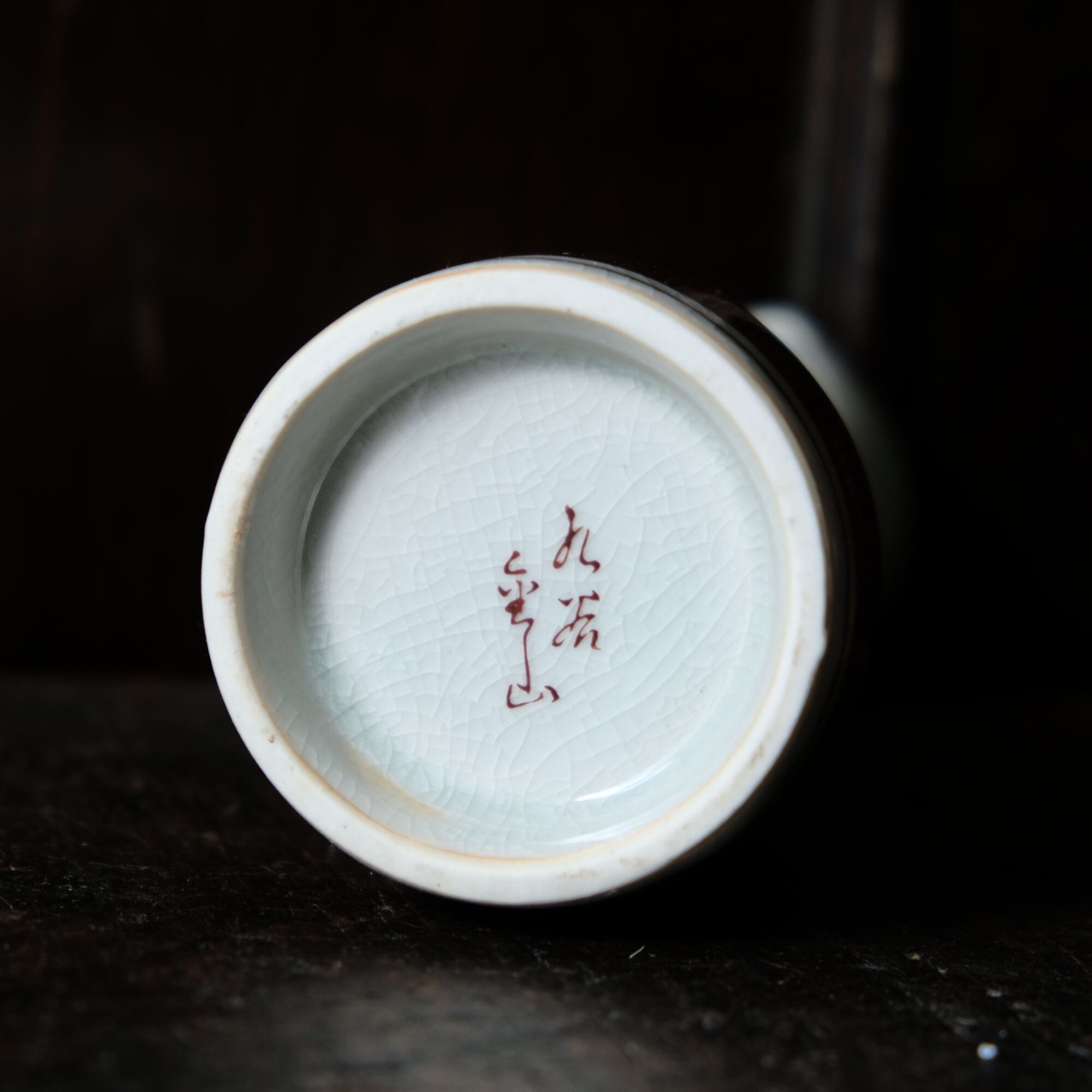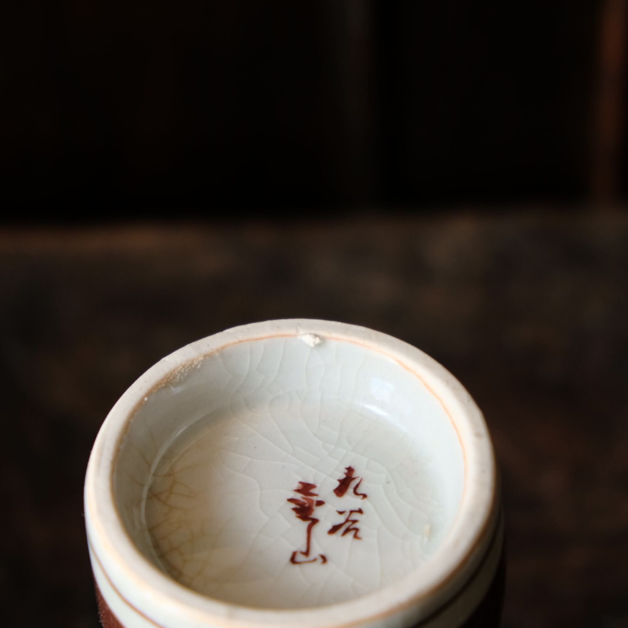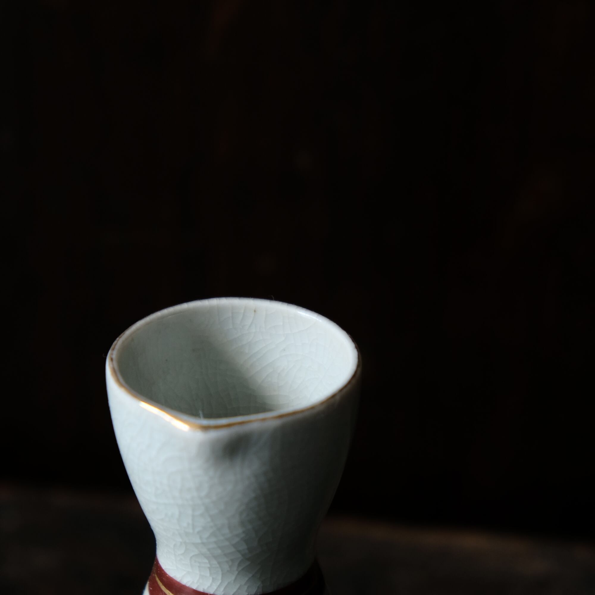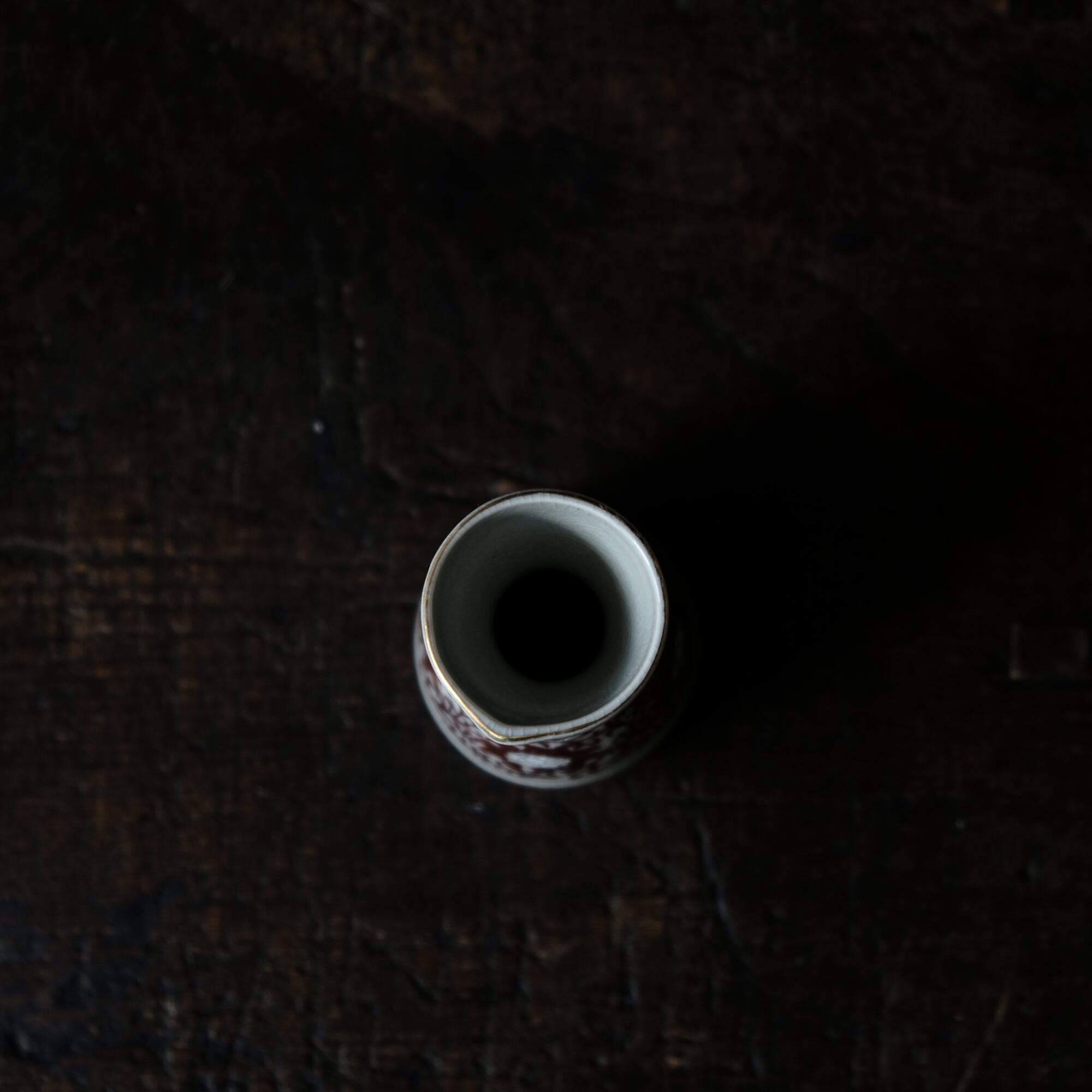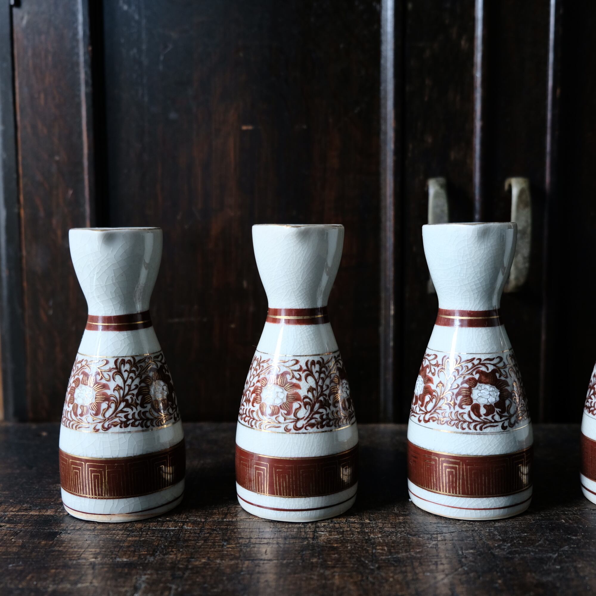 赤いリーフと唐草◆白い花文様。九谷焼 赤絵金彩徳利 酒器 工芸品 岳山 昭和レトロ インテリア 古民家
