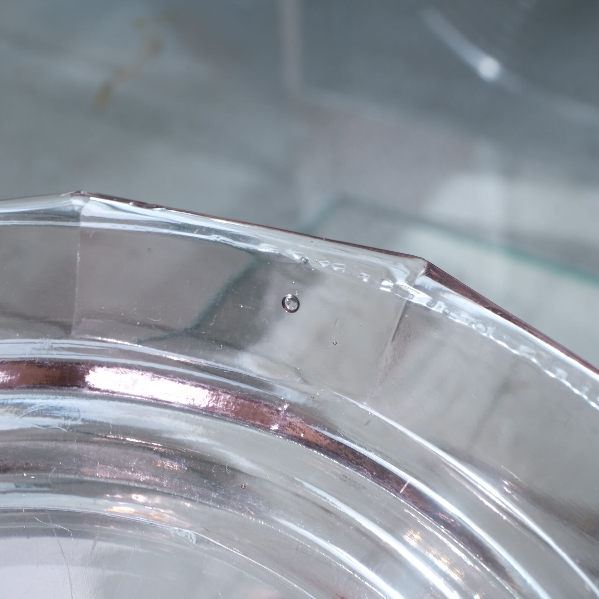 制作段階に生じたバリなどの縁のザラつきが見られ現代のガラス製品のように