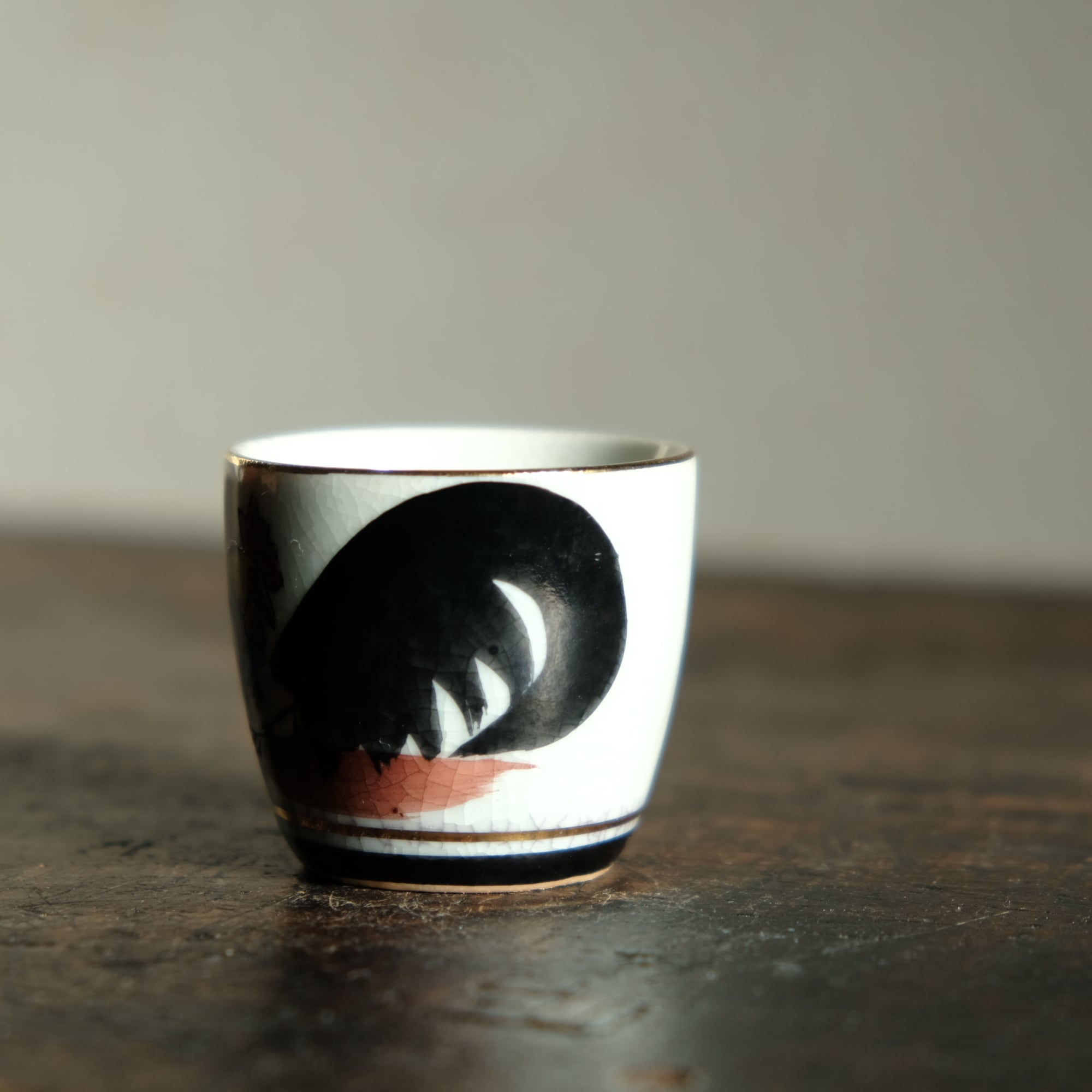 カラフルな鶏(酉)◆九谷焼 色絵金彩猪口 昭和レトロ 干支 酒器 コレクション 古民家 古道具 #7