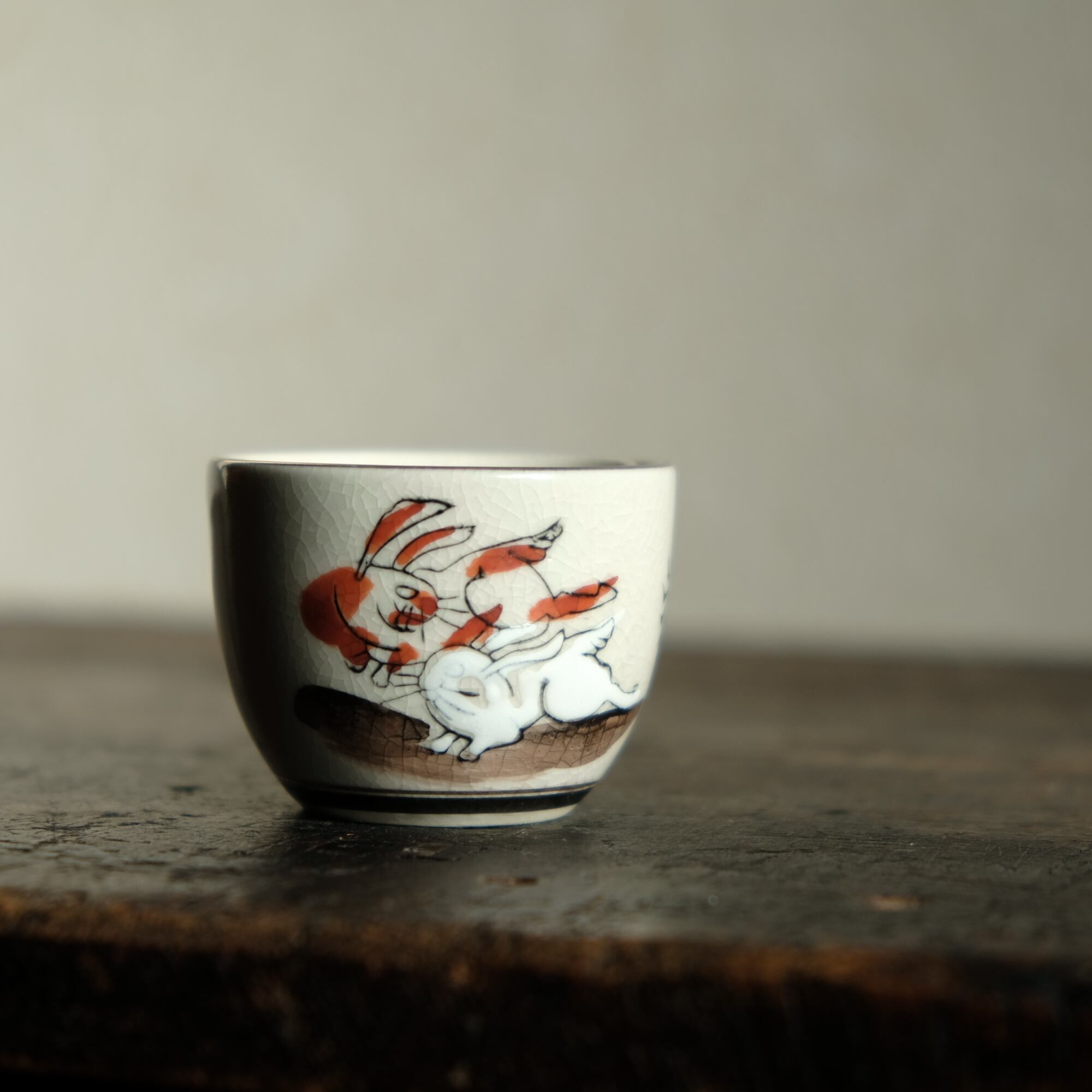 駆けっこする2匹の兎(卯)◆九谷焼 色絵金彩猪口 昭和レトロ 干支 酒器 コレクション 古民家 古道具 #8