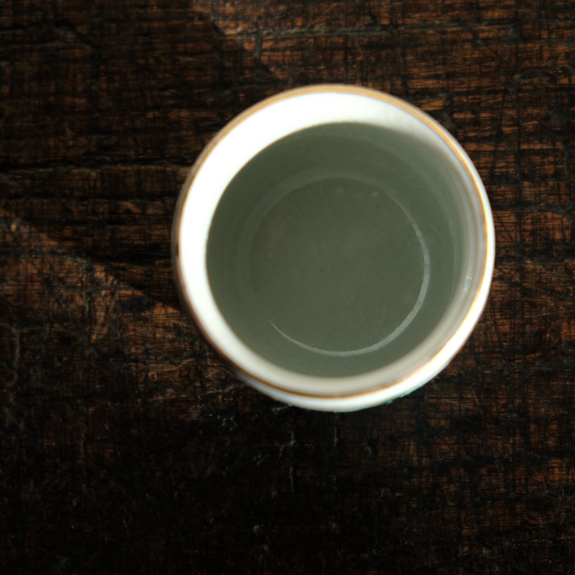カラフルな鶏(酉)◆九谷焼 色絵金彩猪口 昭和レトロ 干支 酒器 コレクション 古民家 古道具 b1