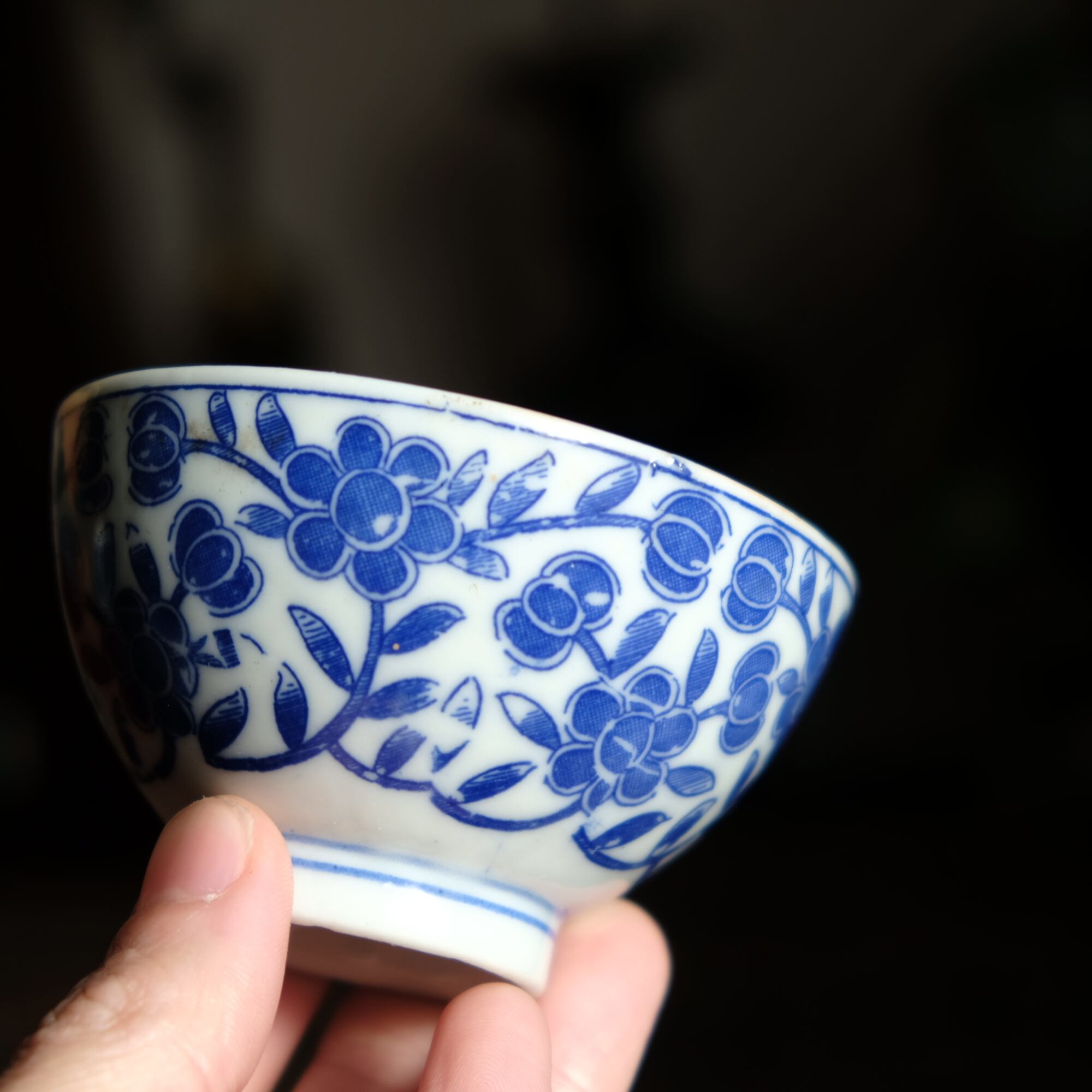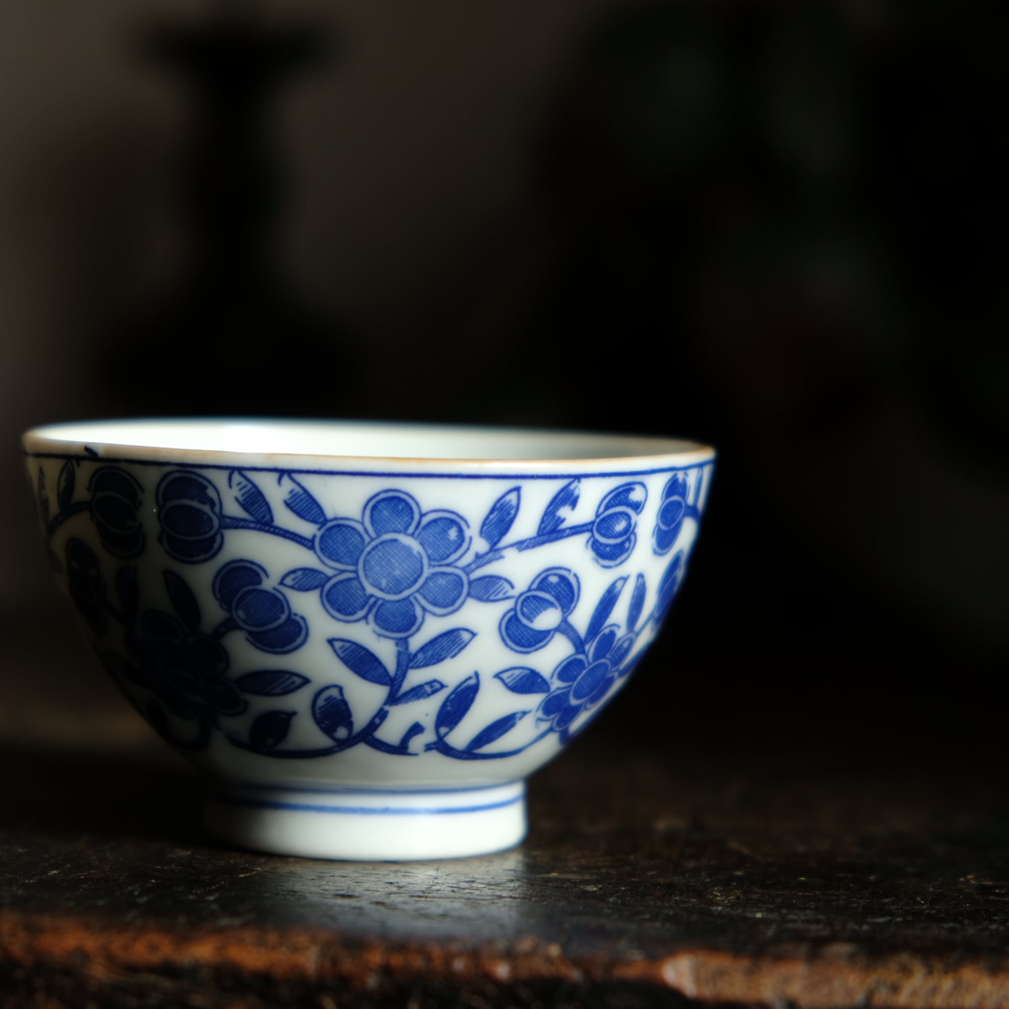 印判で素敵◆瀬戸焼 花文印判湯呑み 煎茶茶器 骨董・antiques 大正期 暮らしに骨董。